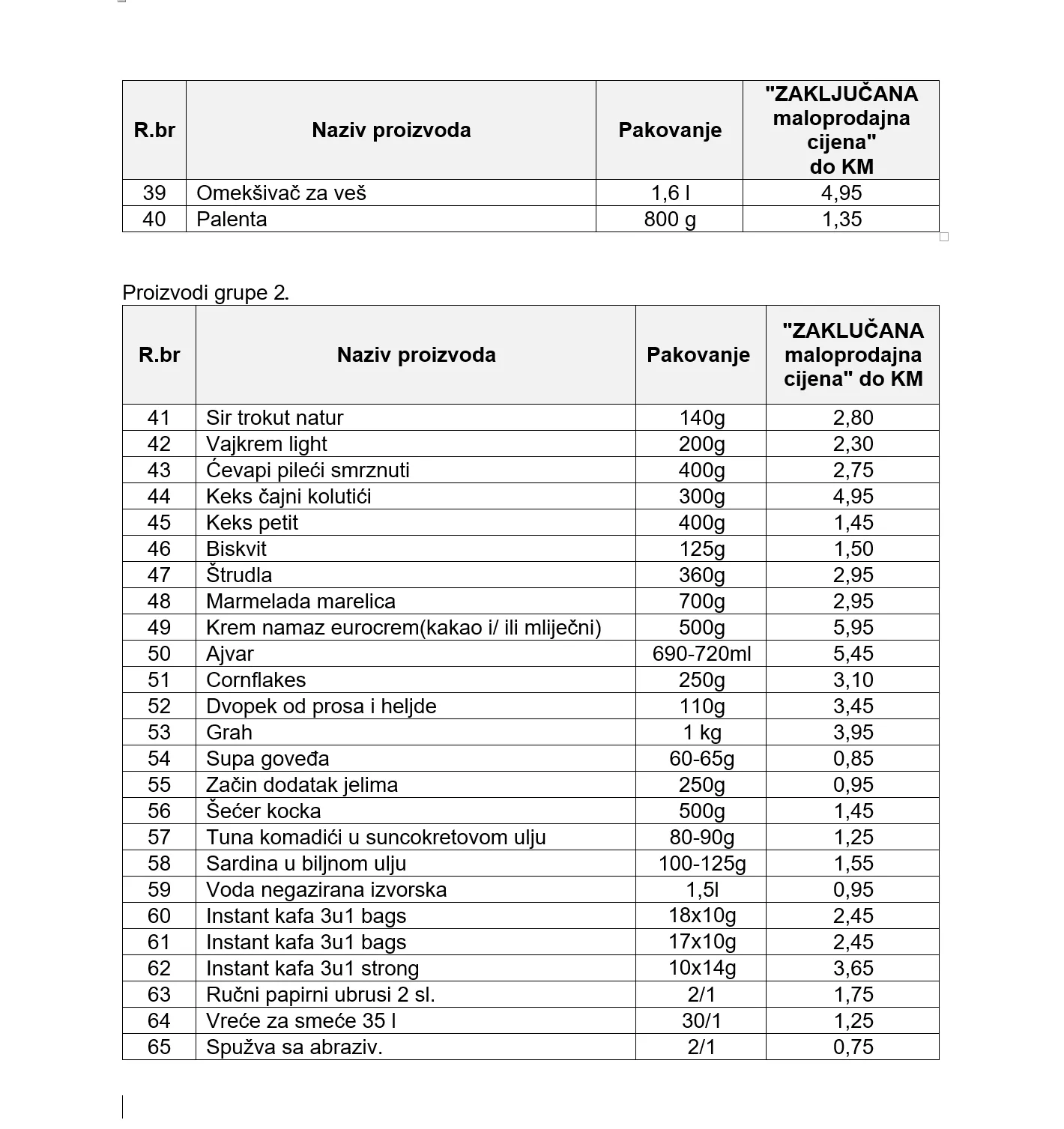 Ovom odlukom se za 65 proizvoda, koji su podijeljeni u dvije grupe, propisuje najviši nivo maloprodajnih cijena.