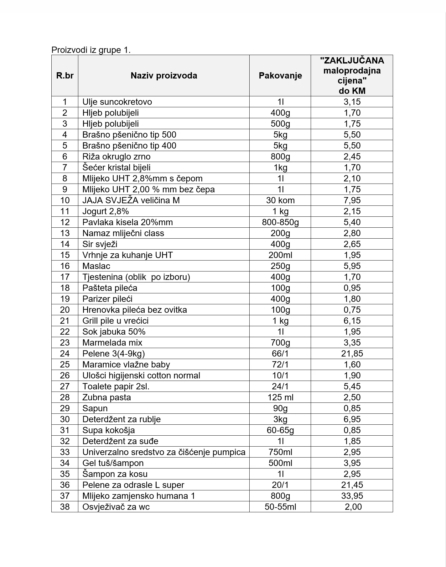 Fizička lica registrovana za obavljanje trgovine na malo u svom prodajnom objektu obavezna su odrediti najviši nivo maloprodajnih cijena za najmanje 10 proizvoda iz prve grupe.