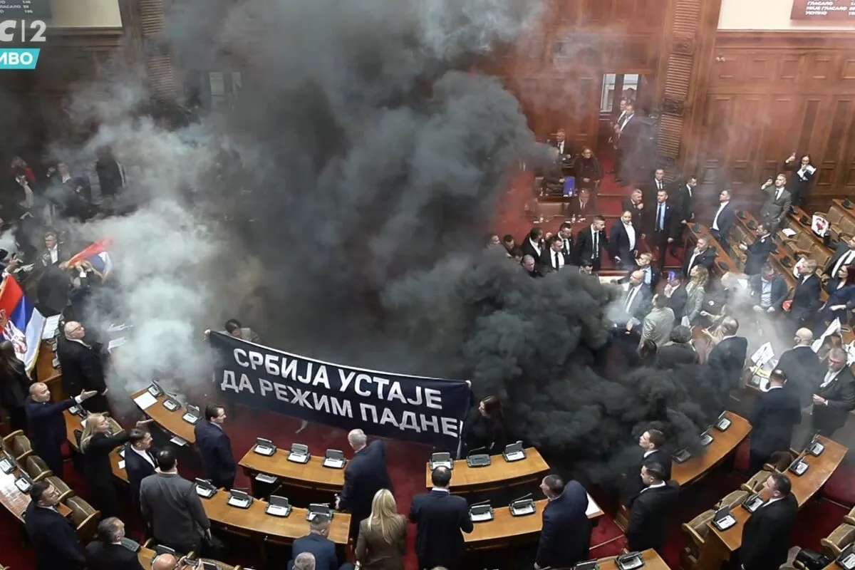 Haos u Skupštini Srbije. Poslanici zapalili baklje. Bačen i suzavac pic.twitter.com/bbAD7dhfYS