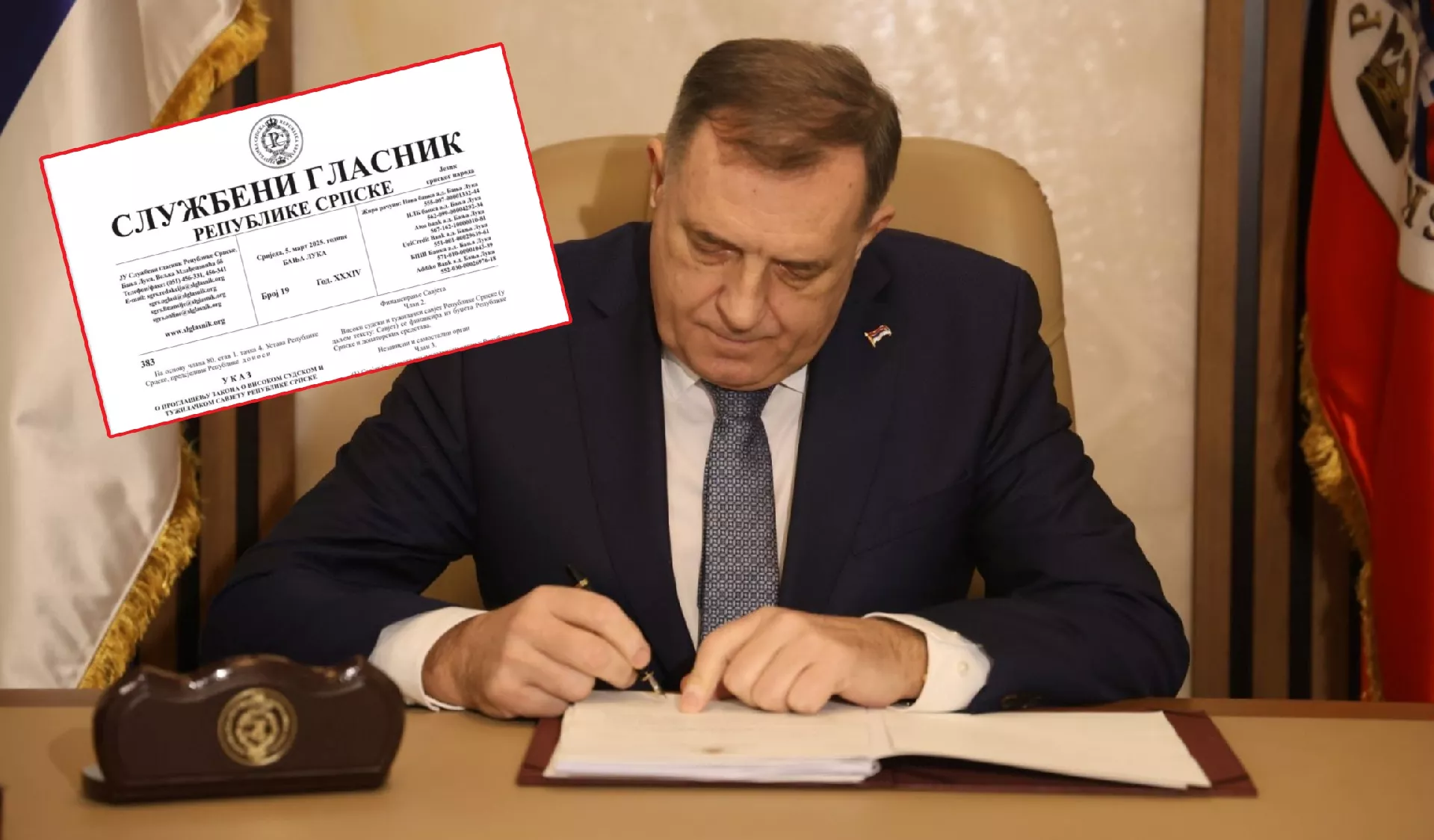 Podsjetimo, predsjednik Rs Milorad Dodik ranije večeras potpisao je ukaze za Zakon o neprimjenjivanju zakona i zabrani djelovanja vanustavnih institucija BiH, Zakon o VSTV-u Rs, Zakon o dopuni Krivičnog zakonika Rs i Zakon o Posebnom registru i javnosti rada neprofitnih organizacija.