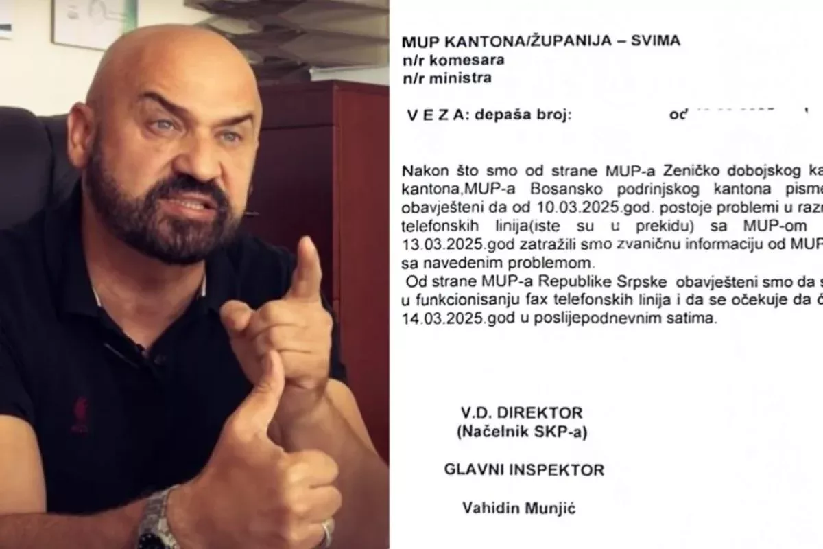 "Nakon što smo od strane MUP-a Zeničko-dobojskog kantona, MUP-a Sarajevskog kantona, MUP-a Bosansko-podrinjskog kantona pismenim ili usmenim putem obaviješteni da od 10. 3. 2025. godine postoje problemi u razmjeni informacija putem fax i telefonskih linija (iste su u prekidu) sa MUP-om Rs, dana 13.3. 2025. godine zatražili smo zvaničnu informaciju od MUP-a Rs u vezi sa navedenim problemom. Od strane MUP-a Rs obaviješteni smo da se radi na otklonu problema u funkcionisanju fax telefonskih linija i da se očekuje da će problem biti riješen 14.3.2025. godine u poslijepodnevnim satima", navedeno je u depeši koju je svim komesarima u Federaciji poslao Vahidin Munjić, v.d. direktora FUP-a koji djeluje u okviru resora federalnog ministra unutrašnjih poslova Rame Isaka.