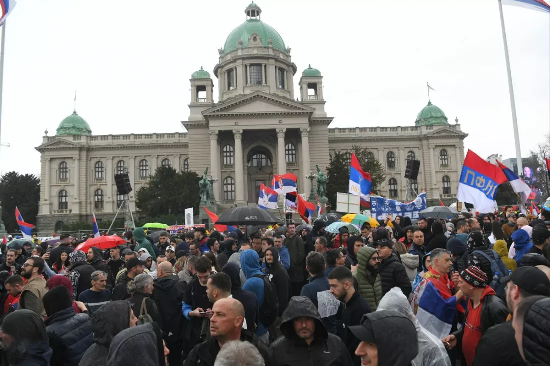 Pola sata prije predviđenog početka skupa pod nazivom "15. za 15" u centru Beograda, plato ispred Doma Narodne skupštine već je ispunjen demonstrantima, dok velike kolone građana, uprkos kiši, još pristižu. Najveće kolone građana stižu sa Novog Beograda gdje se nalazi više hiljada ljudi koji čekaju da u talasima prijeđu Brankov most, kako ne bi ugrozili stabilnost mosta.