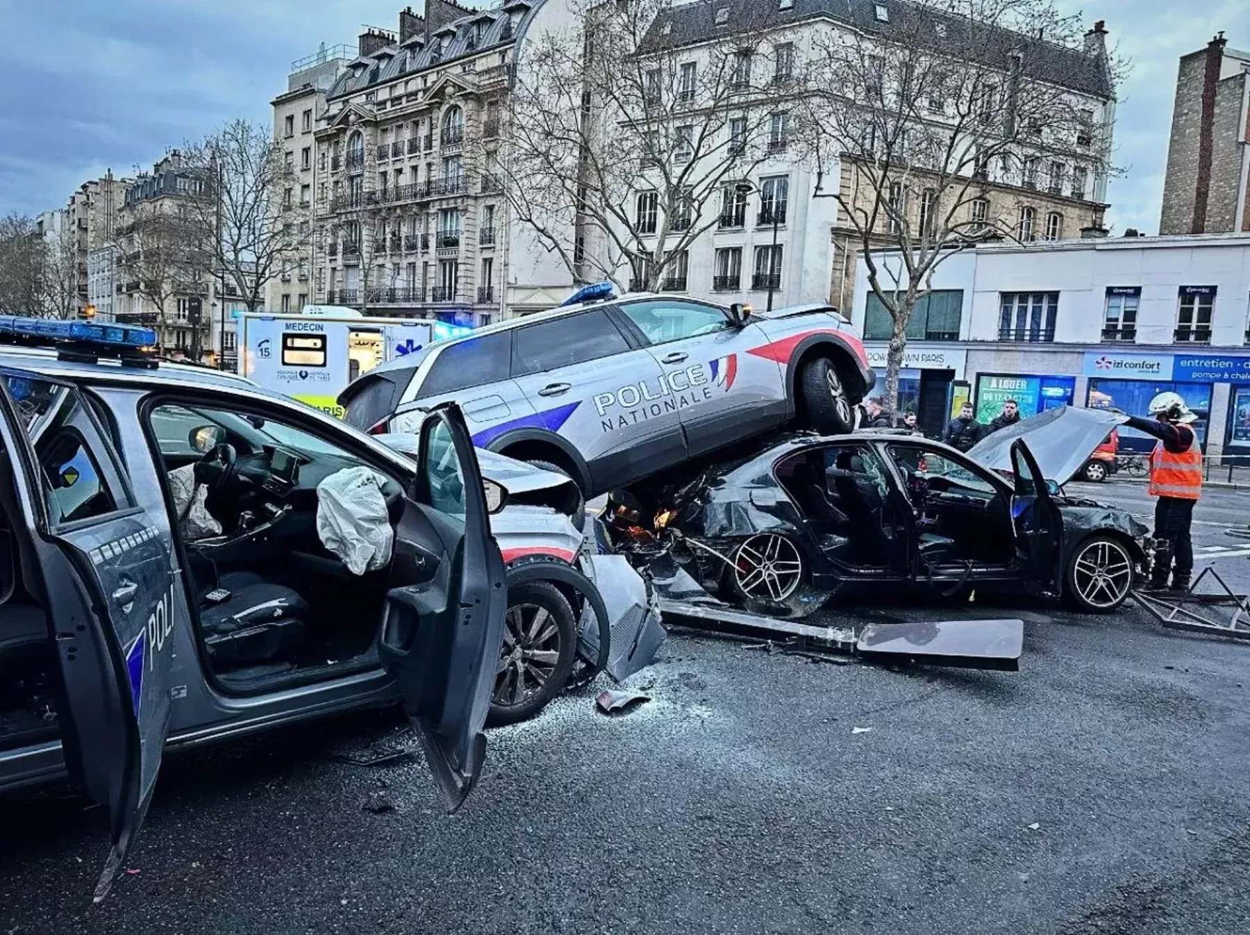 Jedan svjedok rekao je za francuski list Le Parisien da je isprva pomislio kako su "naslagani i zgnječeni automobili dio filmskog seta".