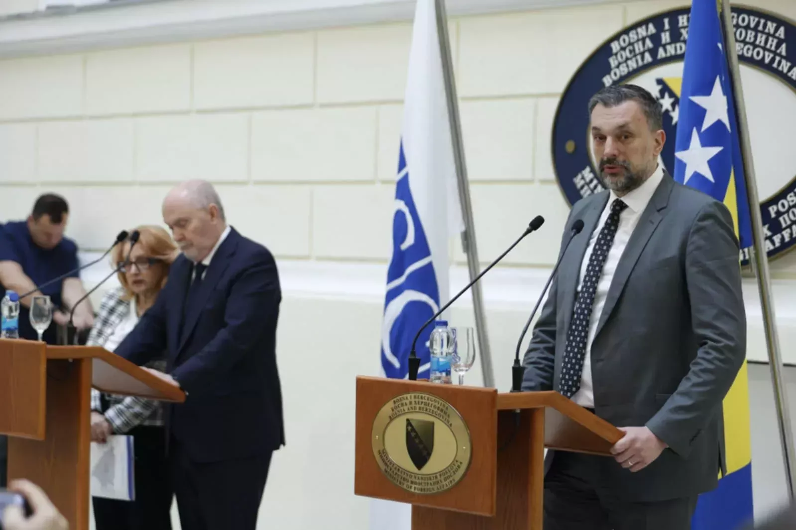 (Patria) - Generalni sekretar OSCE-a Feridun H. Sinirlioğlu boravi u posjeti Bosni i Hercegovini. Sinirlioğlu je jutros razgovarao sa ministrom vanjskih poslova BiH Elmedinom Konakovićem nakon čega su se obratili medijima.