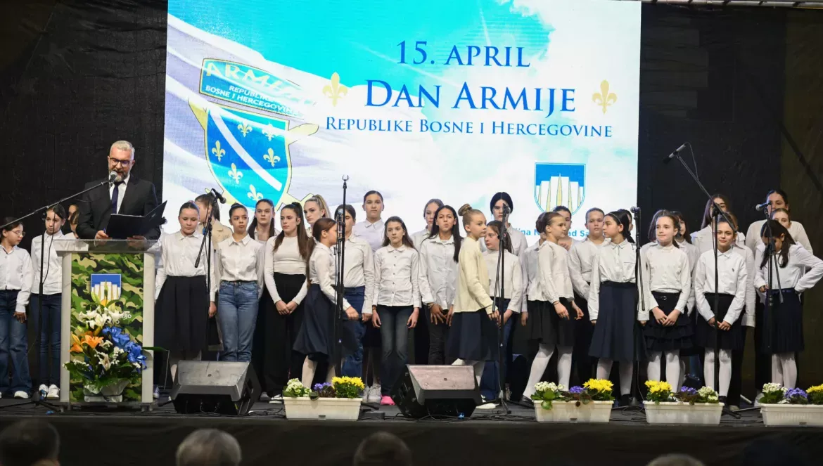 Svečani program obilježavanja Dana Armije RBiH započeo je intoniranjem himne Bosne i Hercegovine uz vojne počasti Drugog rendžerskog pješadijskog puka Oružanih snaga BiH.