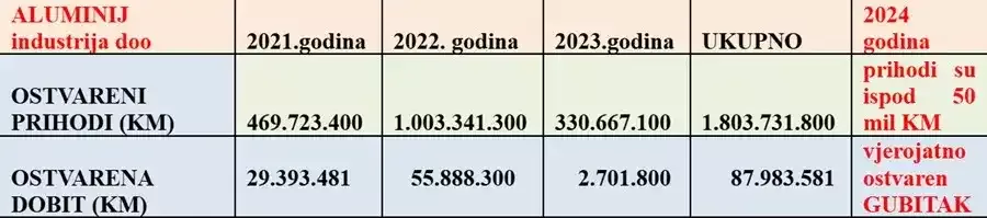 -Aluminij d.d. u vremenu najma akumulirao cca 80 mil KM gubitaka, nije proknjižio preko 200 mil KM zateznih kamata, te preko stotine mil KM gubitka na imovini,