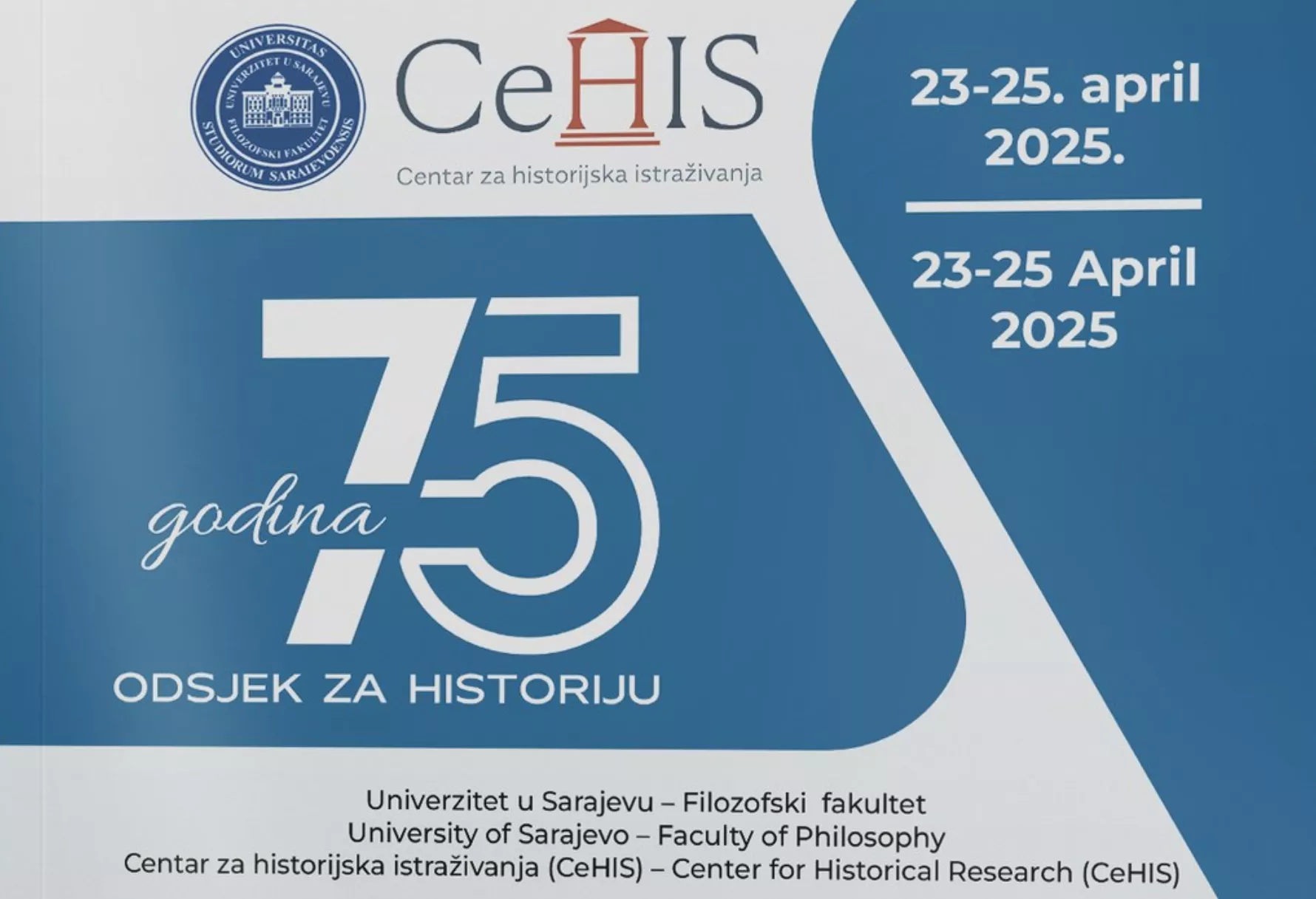 A povod je obilježavanje značajnog jubileja - 75 godina od osnivanja Odsjeka za historiju Filozofskog fakulteta Univerziteta u Sarajevu.