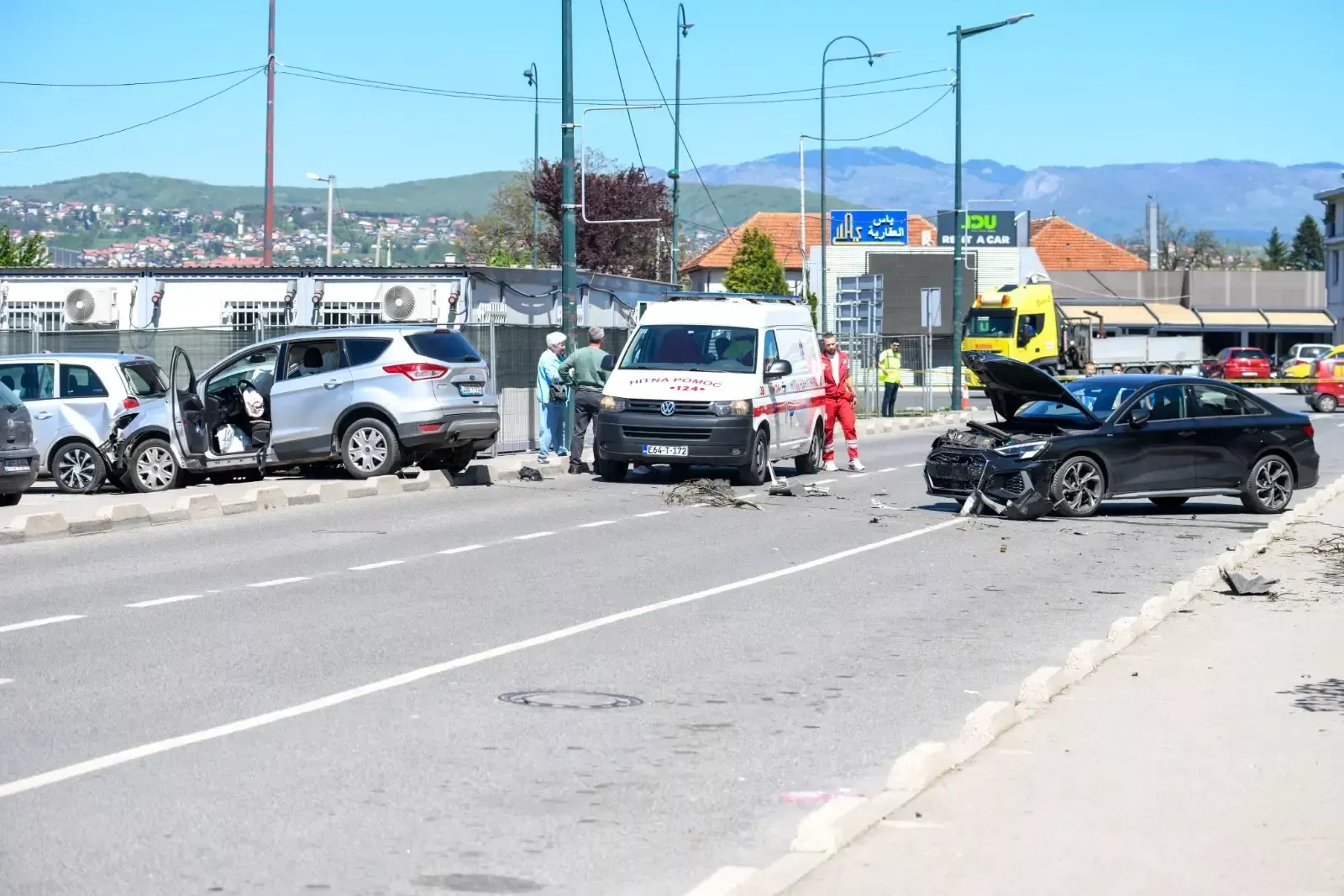 Od siline udara, vozilo Ford Kuga se odbilo i povrijedilo pješakinju M.S. koja se nalazila na trotoaru.