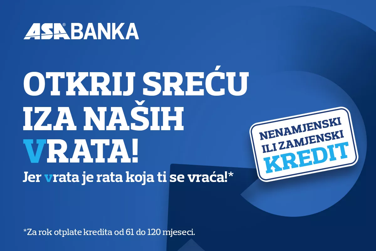 (Patria) - U trenucima donošenja važnih životnih odluka, prednost je imati partnera koji vas istinski razumije i stoji uz vas. Otkrij sreću iza naših vrata je nova ponuda nenamjenskih i zamjenskih kredita ASA Banke koja klijentima nudi finansijska rješenja kreirana prema njihovim stvarnim potrebama.