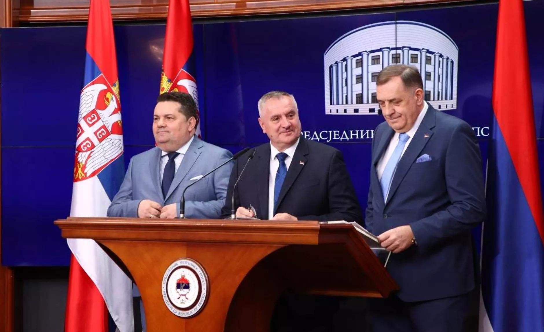 Ovim potvrđujemo da su na snazi bilateralne mjere za sprječavanje ulaska u Austriju i tranzita kroz Austriju za predsjednika Rs Milorada Dodika, predsjednika NSRs Nenada Stevandića i predsjednika Vlade Rs Radovana Viškovića", saopštili su iz Ambasade Republike Austrije.