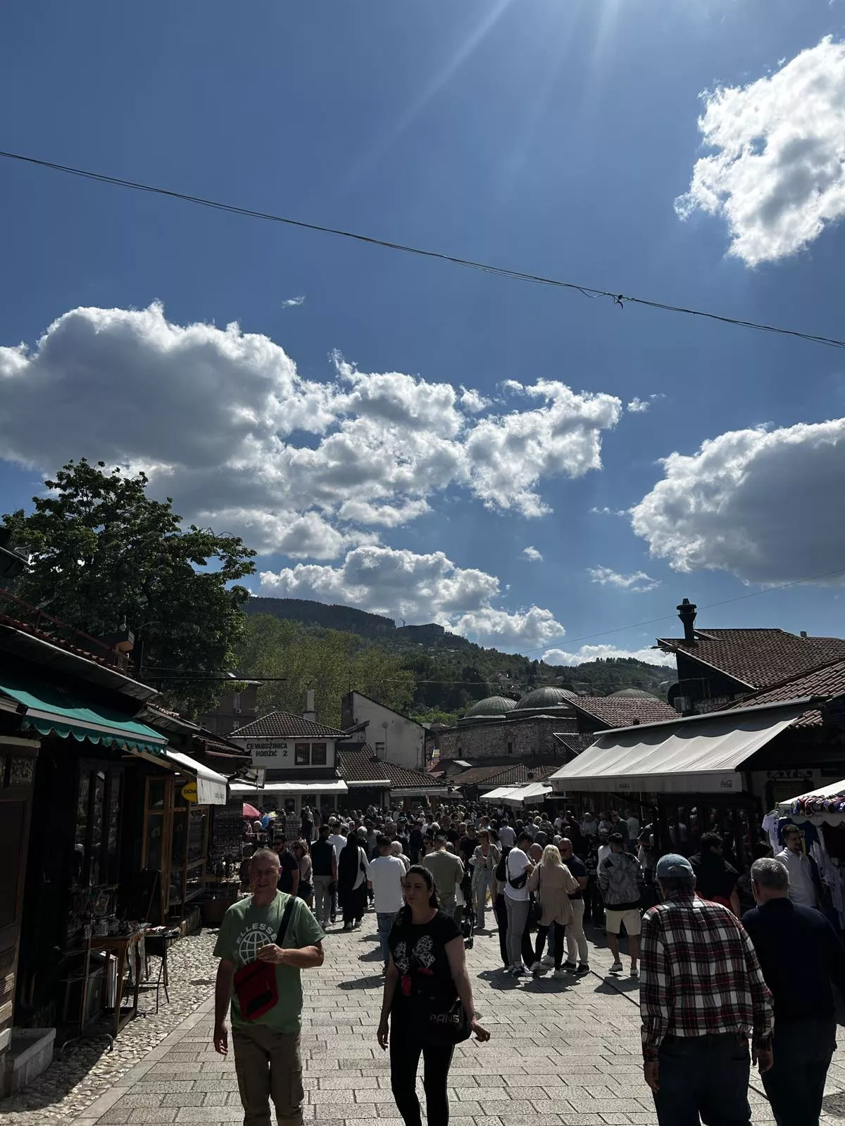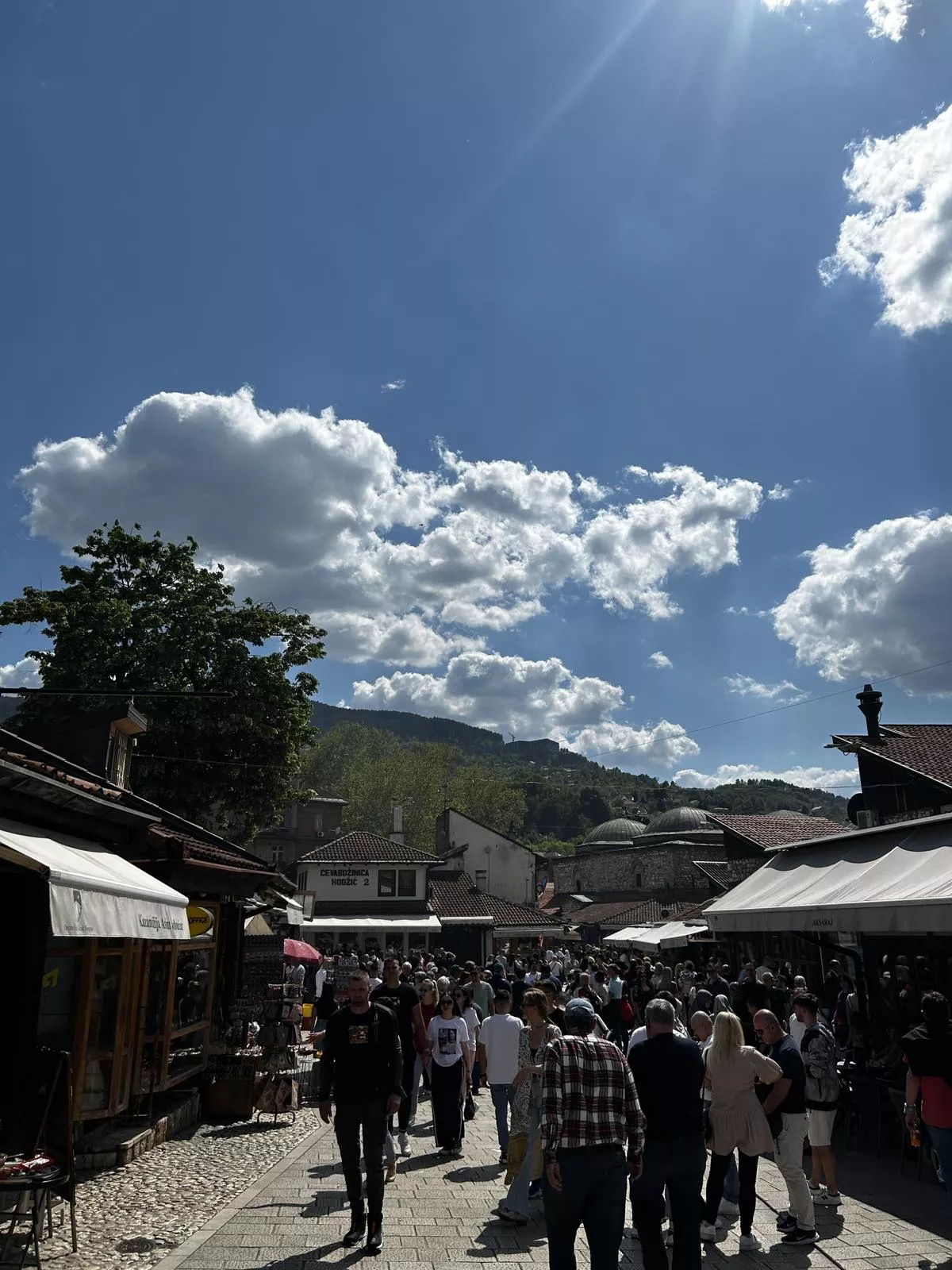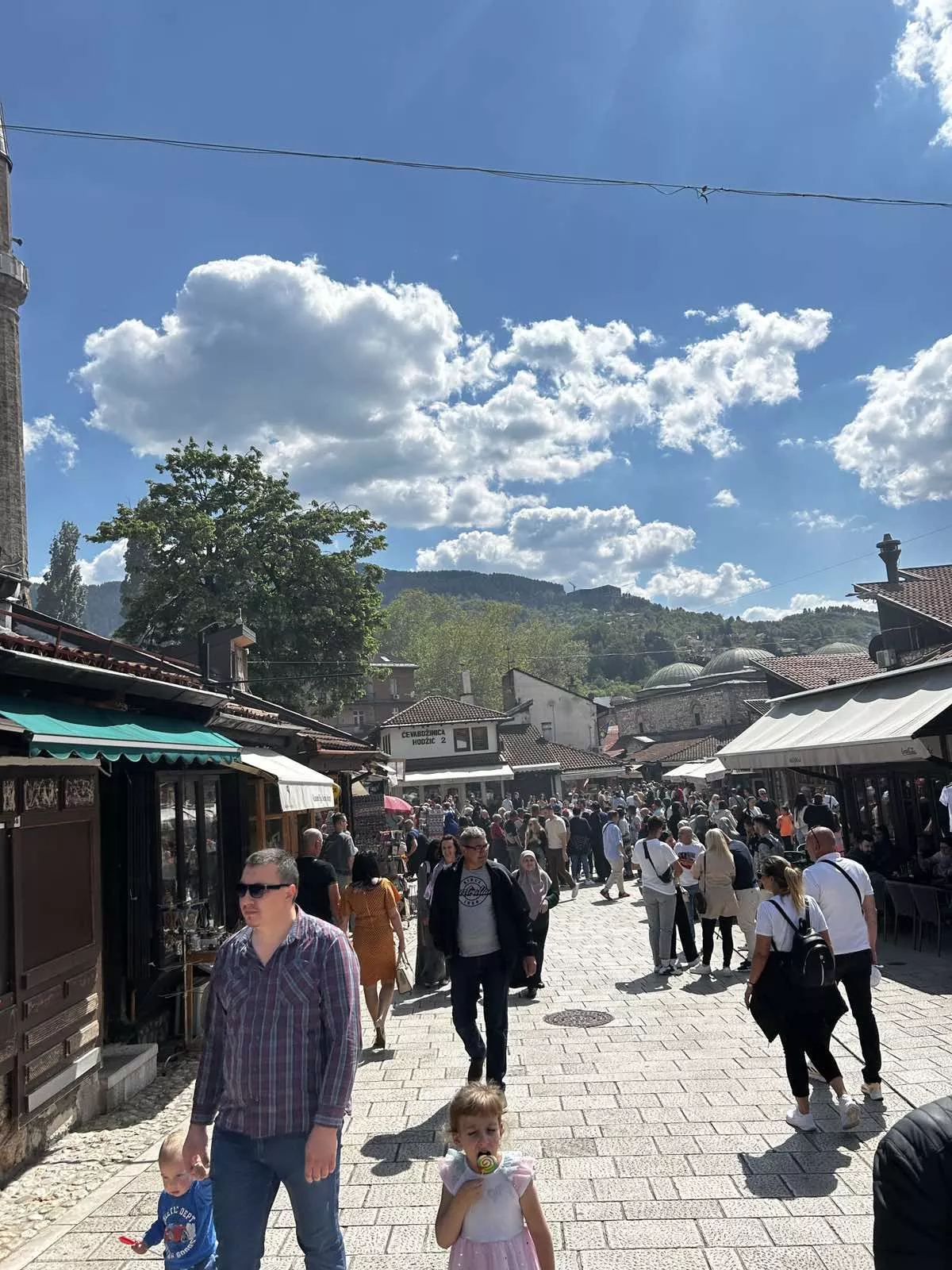 Tako su ulice Sarajeva danas ispunjene brojnim turistima i domaćim posjetiocima koji su praznični dan odlučili provesti u šetnji i ispijanju kafa.