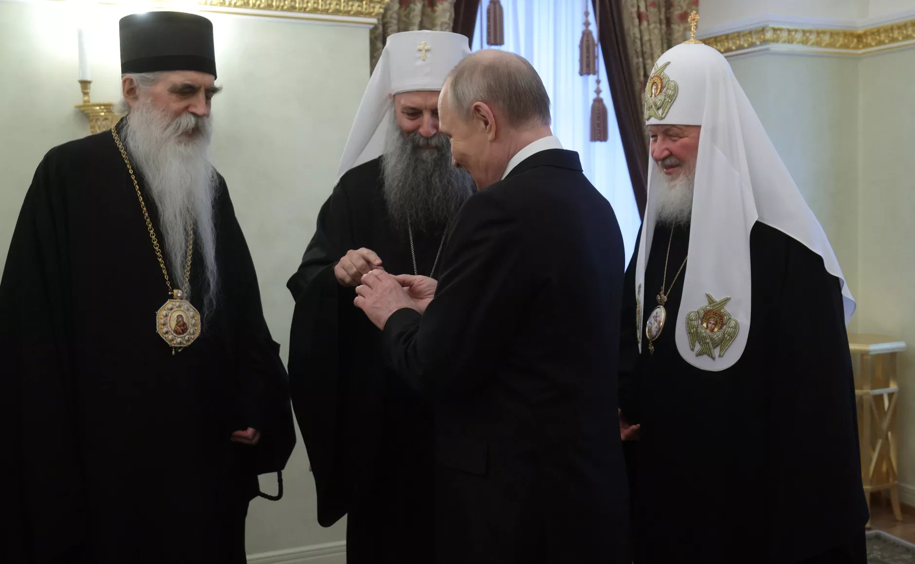 Dva mjeseca poslije, potpuni obrat. Porfirije, kojeg mnogi u Srbiji vide kao Vučićevog čovjeka, reći će predsjedniku Rusije da se u Srbiji dešava „obojena revolucija“ i da se nada „da će to iskušenje biti pobijeđeno“. On je zatražio da Srbija postane dio „ruskog svijeta“ i zahvalio Putinu što podržava Srbiju. Prenio je Putinu pozdrave Vučića, dodavši da će 9. maja srbijanski predsjednik doći u Moskvu na obilježavanje pobjede nad nacizmom u Drugom svjetskom ratu.