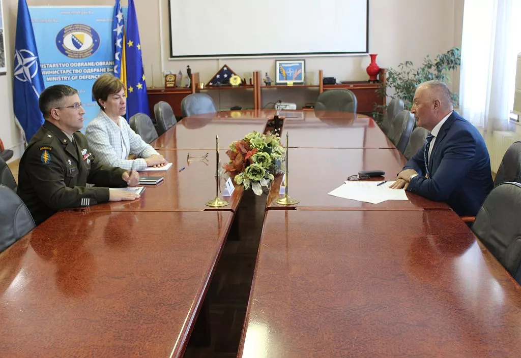 (Patria) - Ministar odbrane Bosne i Hercegovine Zukan Helez primio je u službenu posjetu komandanta NATO Štaba Sarajevo, američkog brigadnog generala Matthewa Valasa.