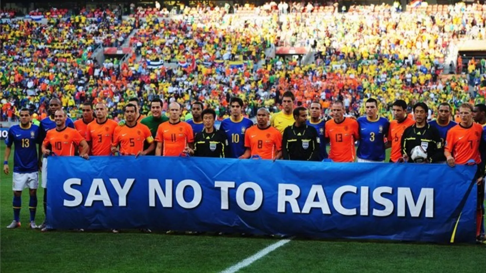 Igrači ili članovi ekipa mogu iskazati rasističke uvrede službeno propisanom gestom. Nakon druge faze slijedi privremeni prekid igre. Ekipe mogu napustiti teren, raspraviti situaciju i procijeniti je. Završna faza je suspenzija ili prekid igre ako se zlostavljanje nastavi ili se situacija ne može smiriti.