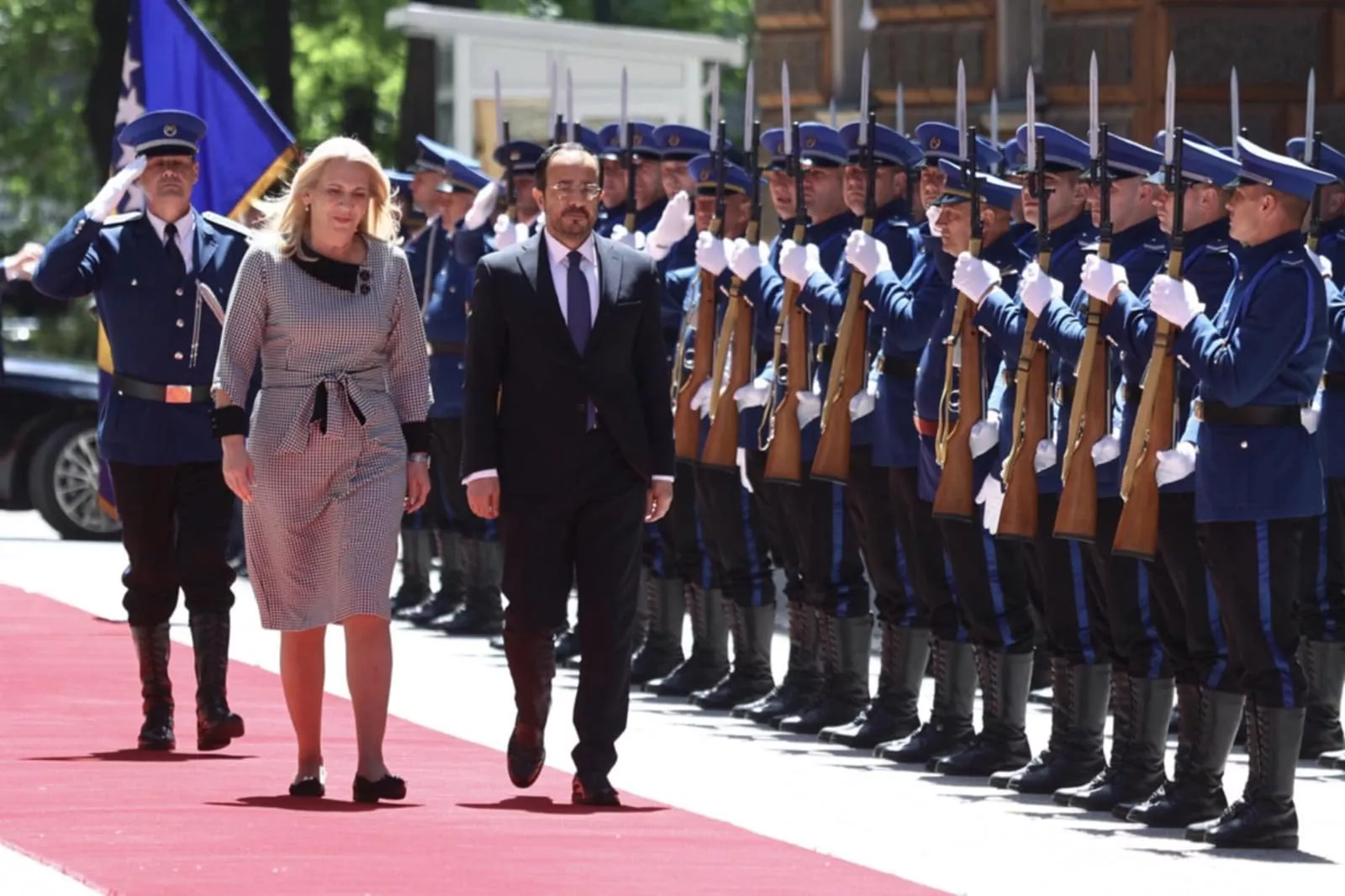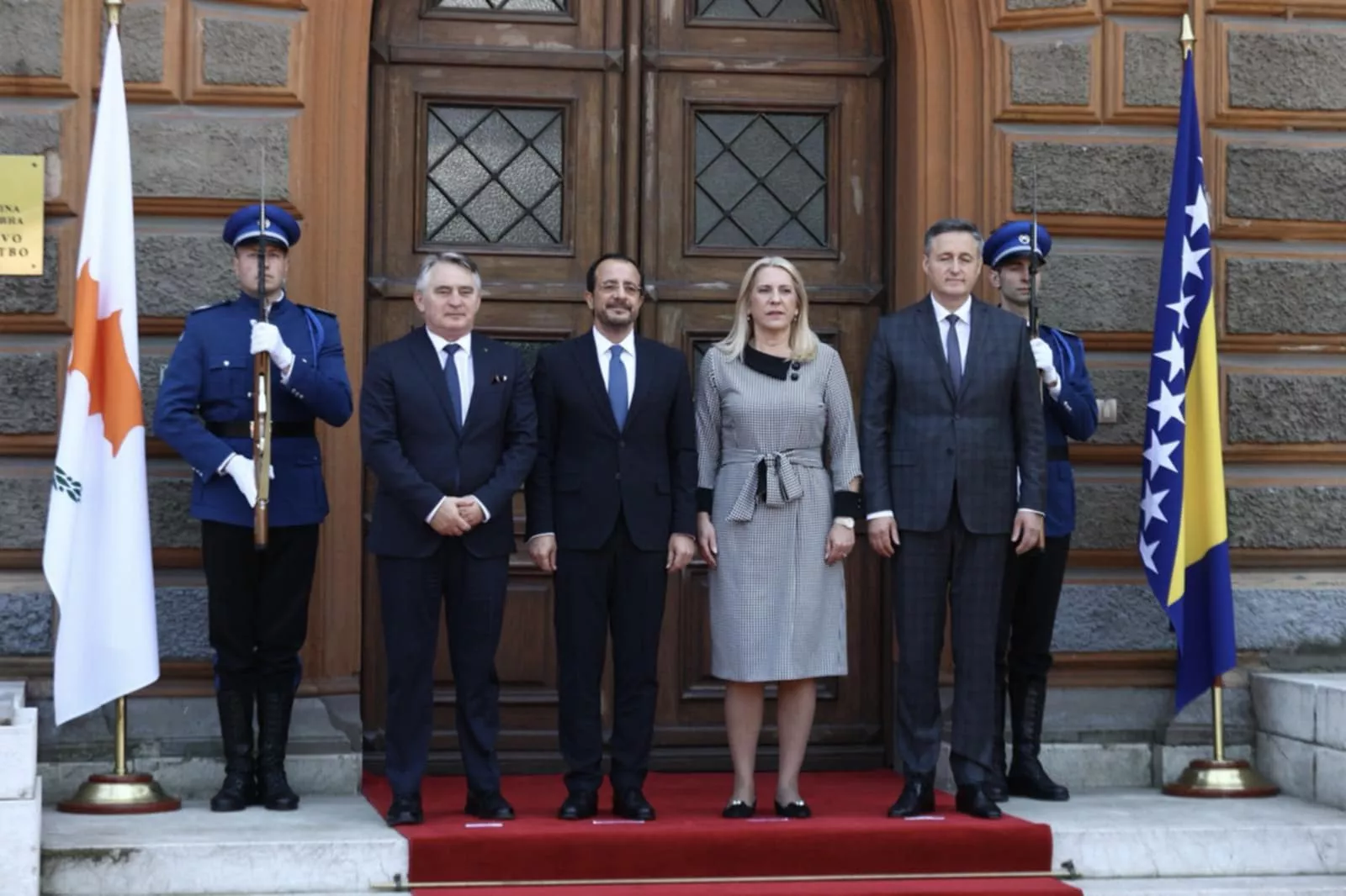 (Patria) - Predsjednik Kipra Nikos Christodoulides boravi u posjeti BiH, a ispred zgrade Predsjedništva BiH upriličen je svečani doček uz vojne počasti.
