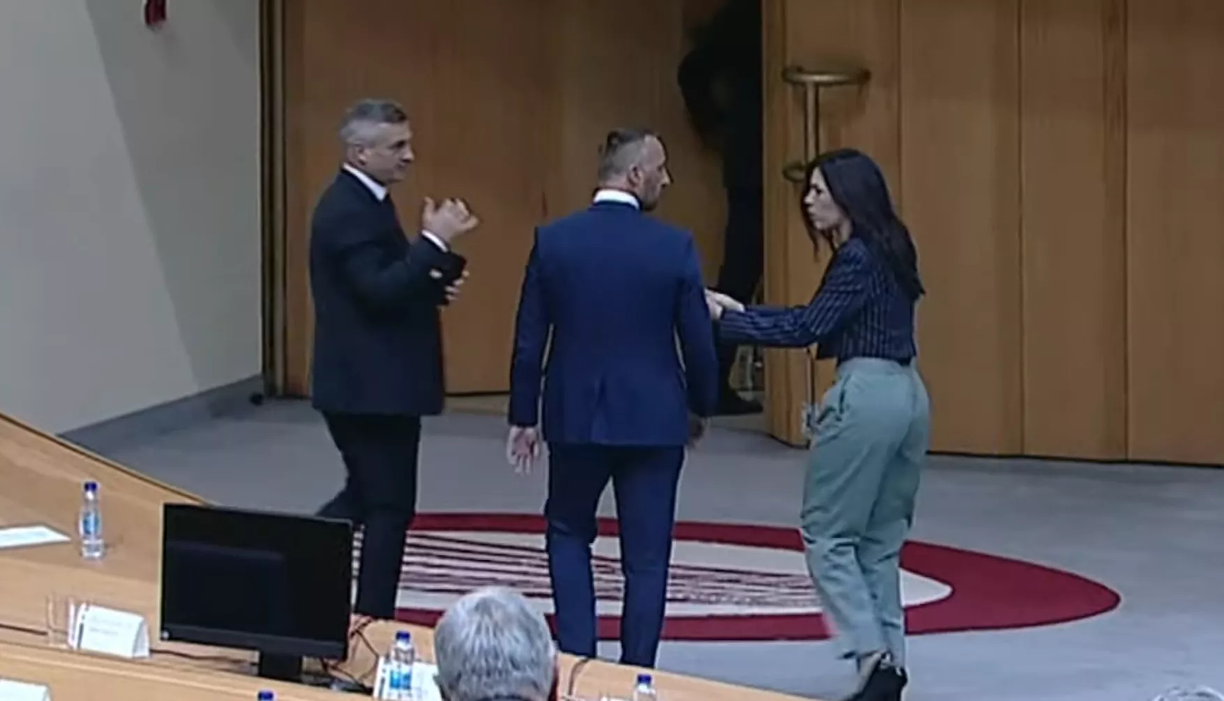 Za njim je krenuo Kojić, dok je Kojićeva stranačka kolegica Sanja Vulić uzviknula: "pauza, pauza". Upravo su ona i član obezbjeđenja spriječili Kojića da izađe na hodnik i obračuna se sa Babaljem.