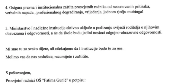 Pismo prosvjetnih radnika pročitajte u nastavku: