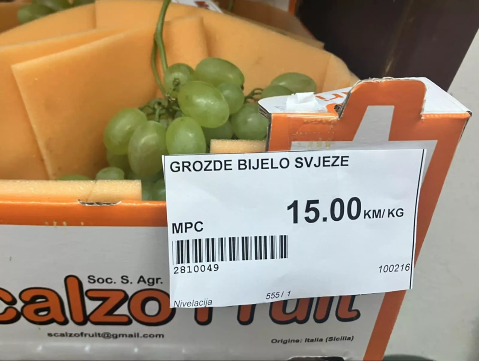 Tako je za kilogram grožđa potrebno izdvojiti 15 KM, a za kajsije 11,70 KM. Kilogram nektarina je 9,10 KM, a krušaka 6,30 KM.
