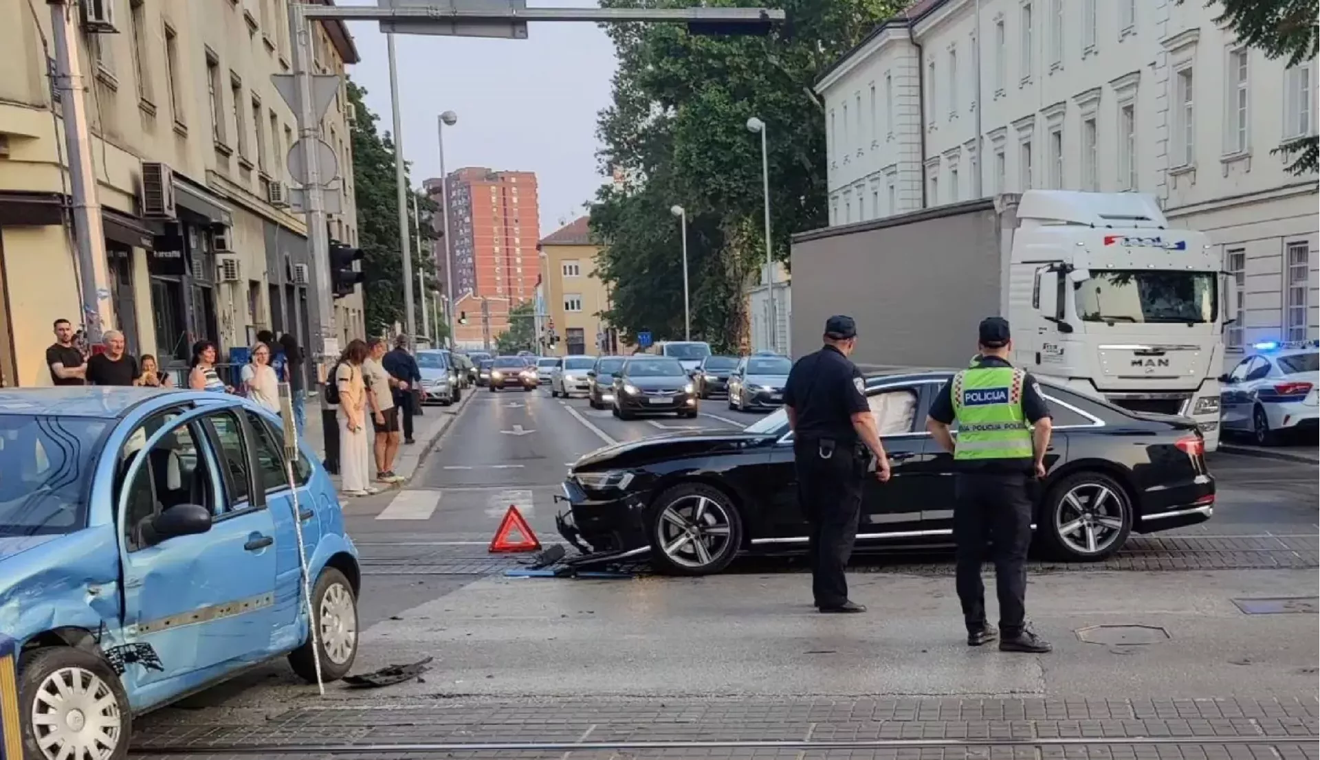 Tom je prilikom prednjim dijelom službenog vozila naletio na bočnu stranu automobila zagrebačkih registarskih oznaka kojim je upravljao 71-godišnjak, koji se Selskom cestom kretao u smjeru sjevera.