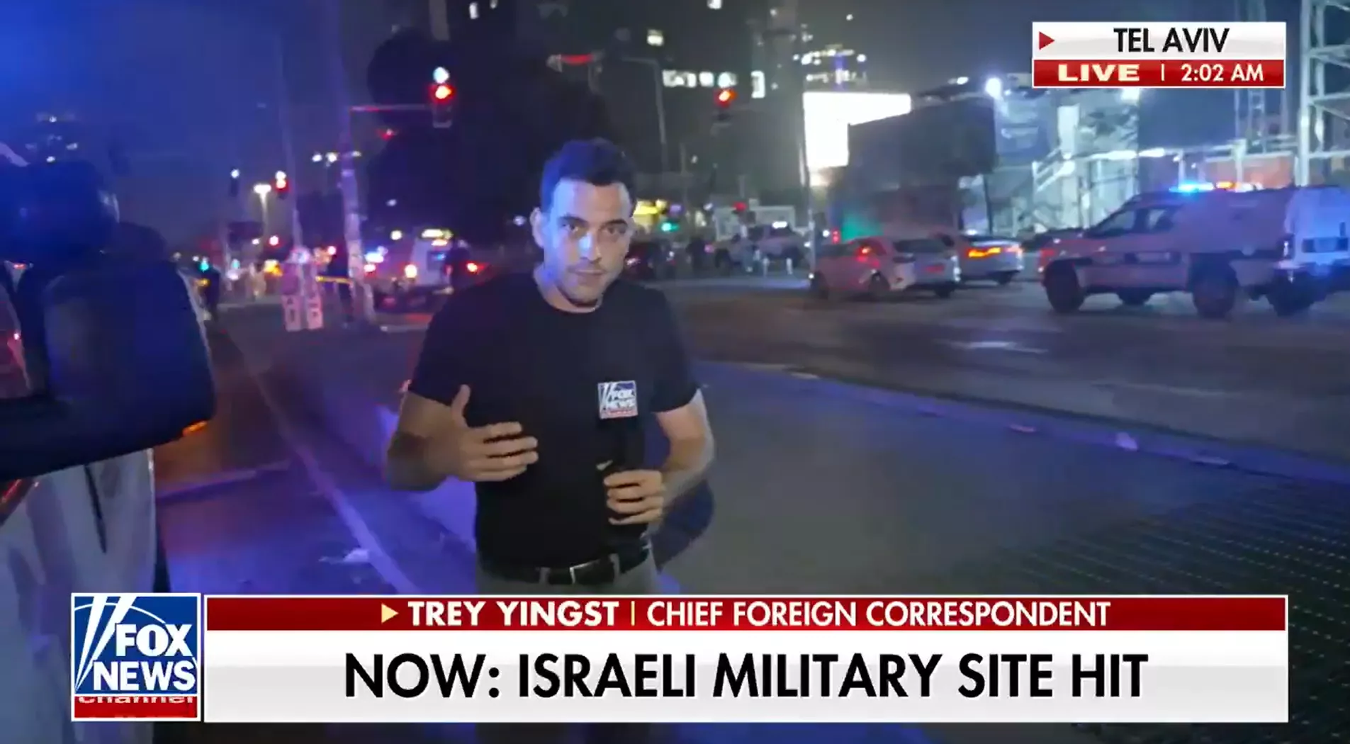 „Ovo je izraelska verzija Pentagona, Kiryat. Zgrada u ovom kompleksu upravo je pogođena“, izvijestio je glavni strani dopisnik Fox Newsa Trey Yingst, uživo iz Tel Aviva.