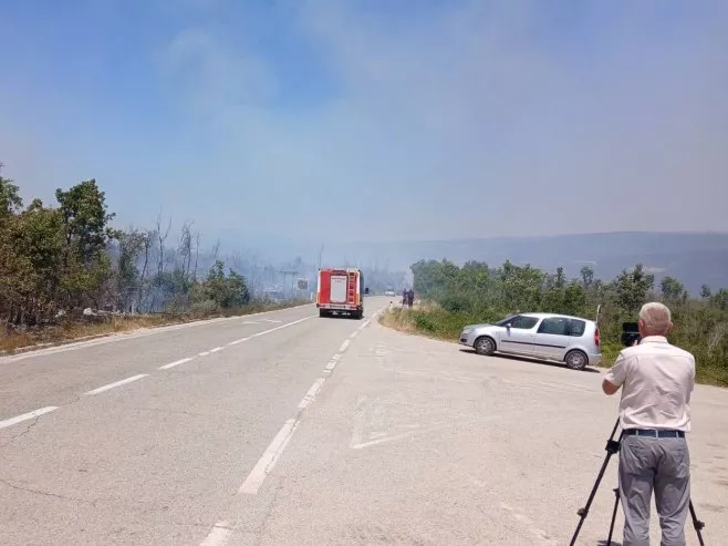 Požari su zahvatili veću površinu, a na terenu su vatrogasci iz Bileće i Trebinja koji pokušavaju da spriječe širenje prema selima Mirilovići i Orah.