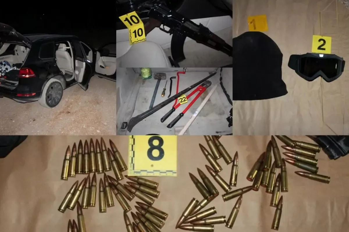 "Prilikom postupanja, slobode je lišeno lice A.F. (1989.) iz Sarajeva. O svemu je obaviješten dežurni tužilac Kantonalnog tužilaštva Mostar pod čijim nadzorom, izvršenim uviđajem u vozilu pronađeni su i izuzeti: automatska puška, tri okvira s ukupno 89 metaka kalibra 7,62 × 39 mm, više pari rukavica, potkapa, maske, razni alati pogodni za izvršavanje krivičnih djela, crijevo s elektroinstalacijama, dva PVC bidona s nepoznatom tekućinom, mobilni telefon, SIM kartica, lampa, više pari odjeće, lične stvari te novac u različitim apoenima", navode iz MUP HNK.