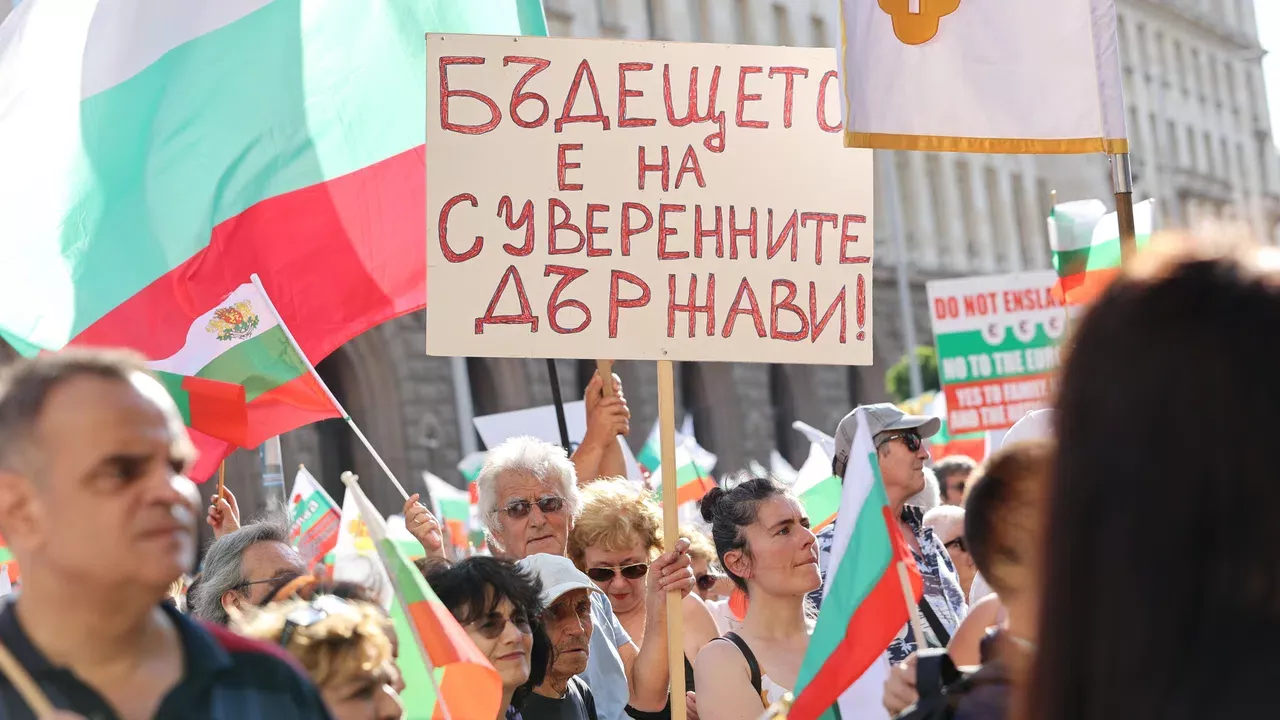 Na trgu je postavljen transparent s natpisom: "Bitka za bugarski lev je posljednja bitka za Bugarsku".