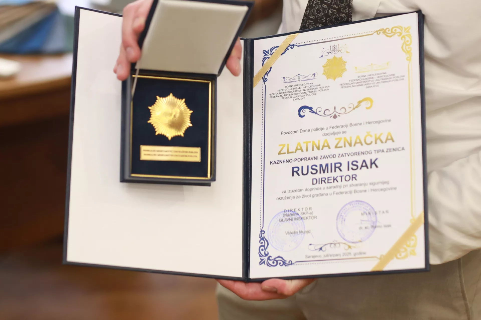 Među nagrađenima je i direktor KPZ Zenica Rusmir Isak, kojem je uručena zlatna značka kao posebno priznanje za doprinos unapređenju sigurnosnog sistema u Federaciji BiH.