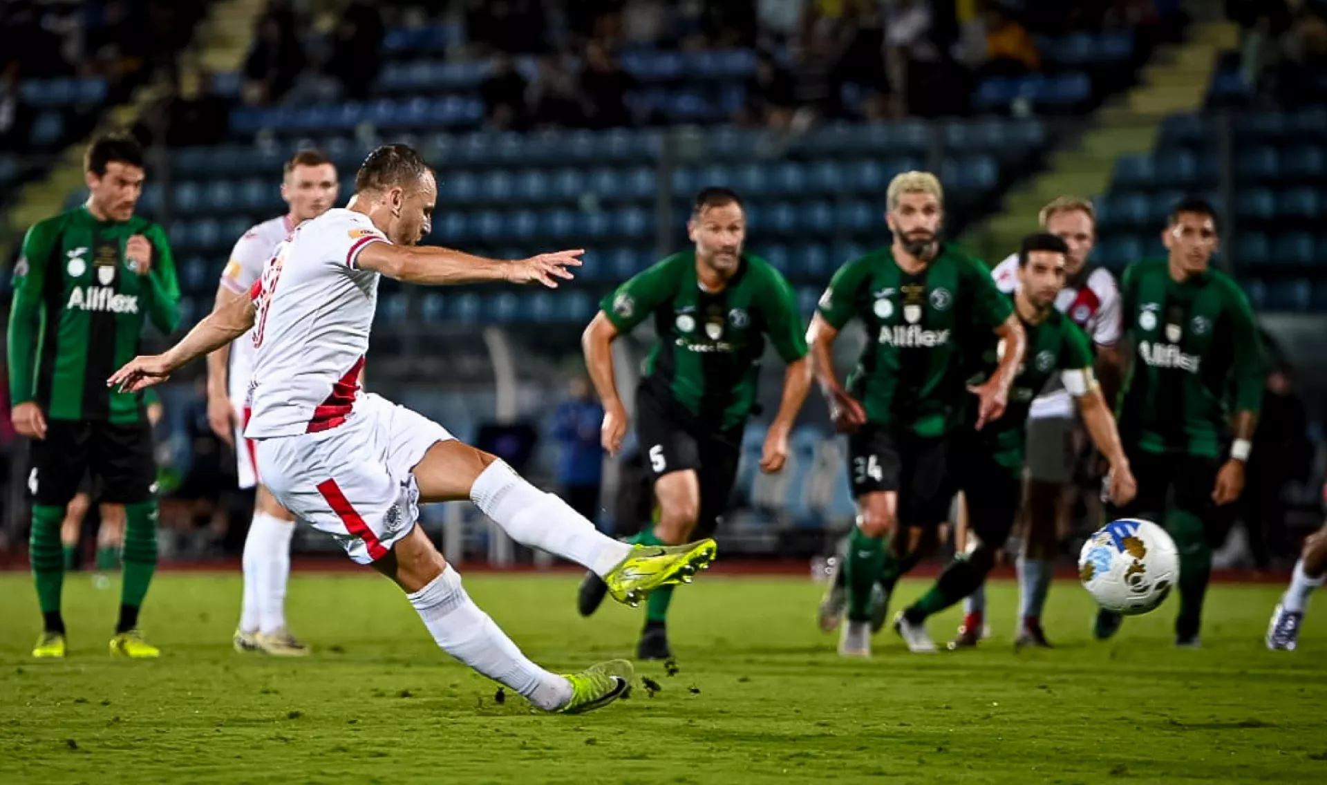 Majstorski udarac Kiša u 17. minuti, ali lopta pogađa prečku gola domaćeg tima.