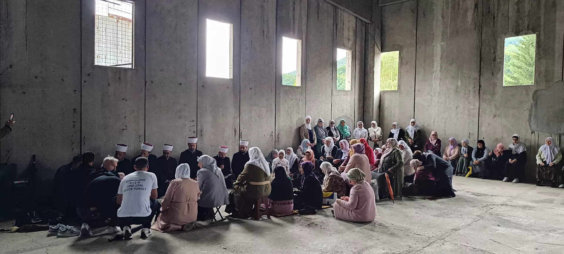 Na putu kroz Srebrenicu kolona sa tabutima zaustavila se kod Gradske džamije u centru grada, a potom uputila ka Potočarima.
