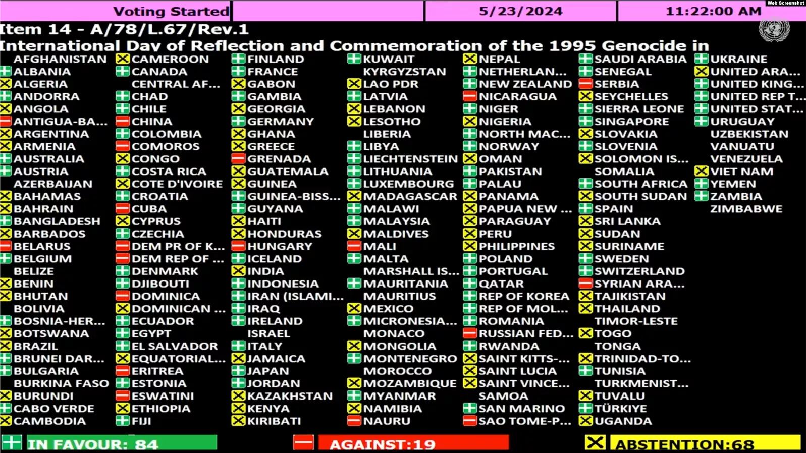 - Zahtijeva od generalnog sekretara da uspostavi program informisanja pod nazivom 'Genocid u Srebrenici i UN', počevši tako svoje djelovanje za obilježavanje 30. godišnjice od genocida;