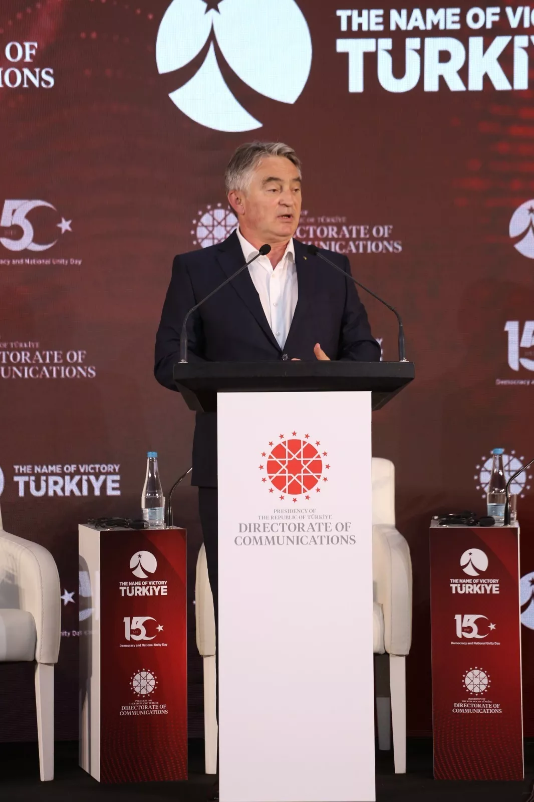 Naglašavajući važnost regionalne i međunarodne uloge Turske, posebno na Bliskom istoku, Balkanu i u islamskim zemljama, Komšić je poručio da je Bosna i Hercegovina uspostavila snažne odnose i saradnju s Turskom, zasnovane na duboko ukorijenjenom prijateljstvu, te izrazio želje za mirom, stabilnosti i demokratijom za turski narod.