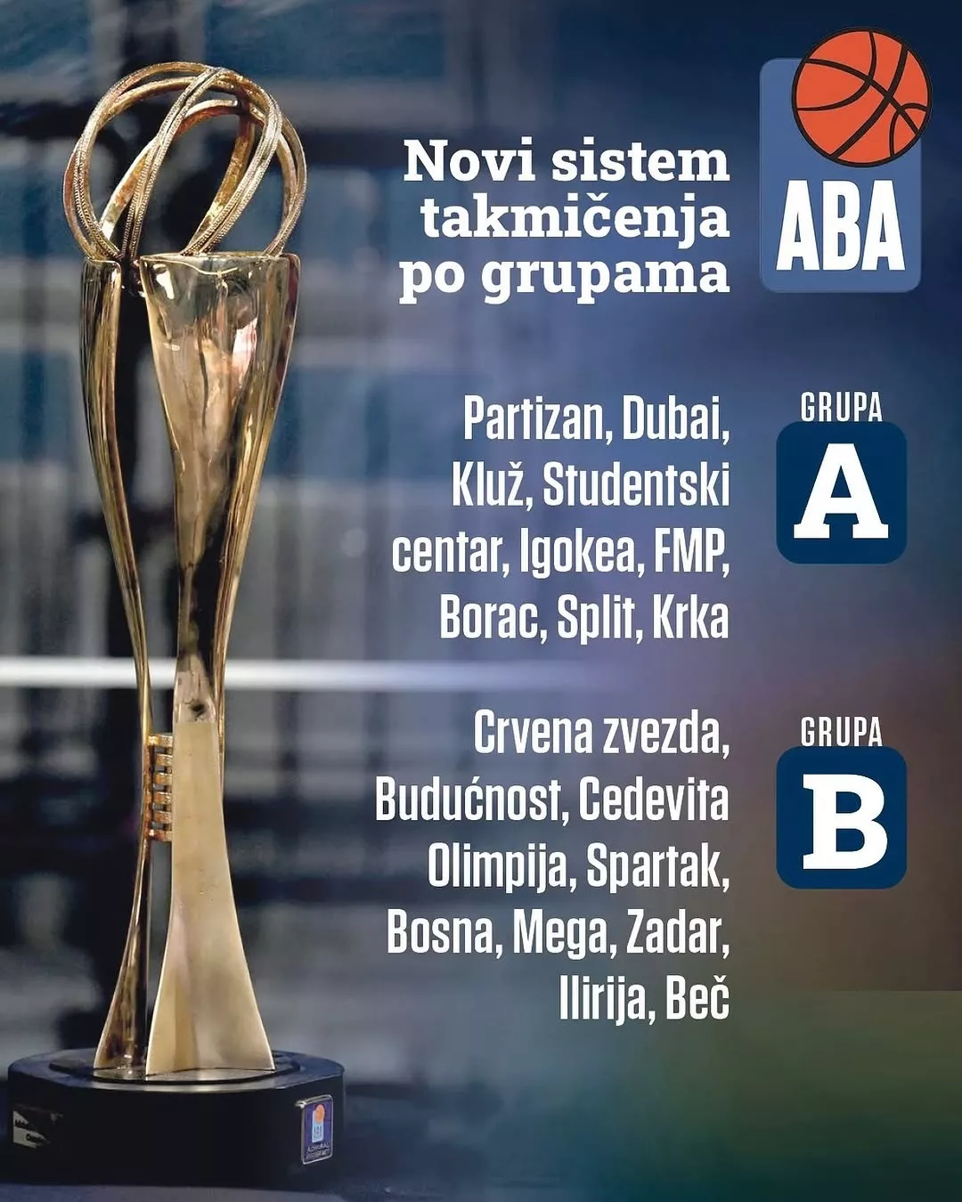 Osim toga, piše Sportal, ozvaničena je promjena sistema takmičenja, pa će se ABA liga naredne sezone igrati u dvije grupe, koje će imati po devet timova.