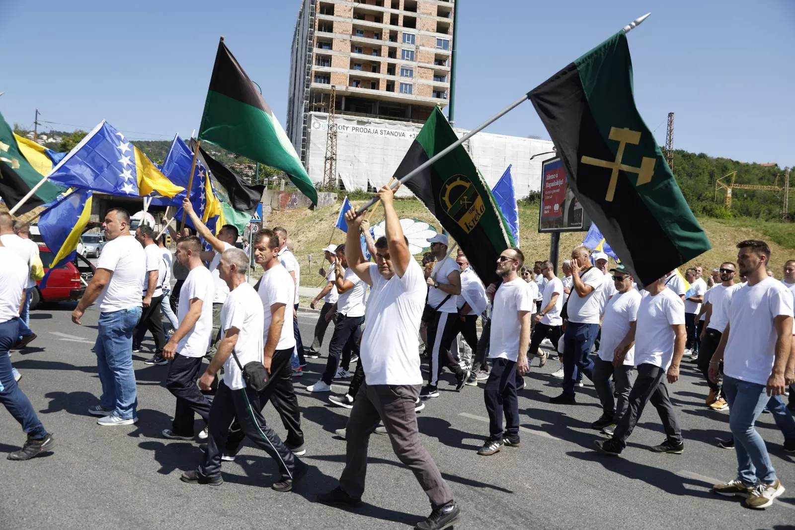 (Patria) - Više od 500 rudara iz Zenice i drugih rudnika unutar koncerna Javnog preduzeća Elektroprivreda BiH okupilo se ispred zgrade Vlade Federacije BiH.