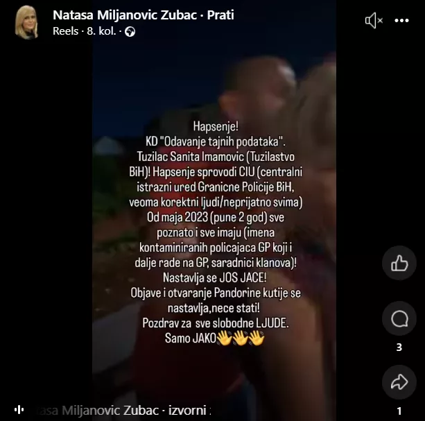 Miljanović-Zubac već godinama objavljuje različite informacije o kriminalu unutar policijskih agencija, a posljednje objave tiču se Granične policije BiH, kriminalnih klanova, OSA-e...