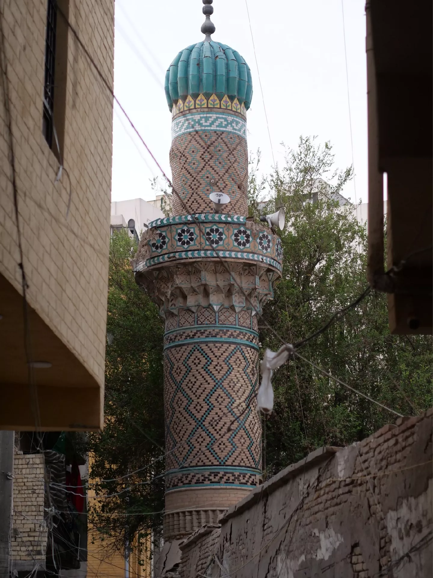 Nakon iskustva iz 2023, kad smo iračku vizu platili 2.000 dolara i nismo je dobili, bojao sam se da možda nikada neću obići građevinu od koje me sada dijeli samo sto metara. Ipak, nije se ukazivala na obzoru. Visoki glineni zidovi, kroz čije se vrhove vidio tek komadić mezopotamijskog neba, zaklonili su je od mog pogleda. A onda sam, skoro poskakujući, izvirio iza raskrsnice. Iz pustinjskog sivila bagdadskih sokaka, krijući se u gustoj krošnji, provirio je zeleni osmijeh munare koju sam tako dugo gledao samo na slikama.