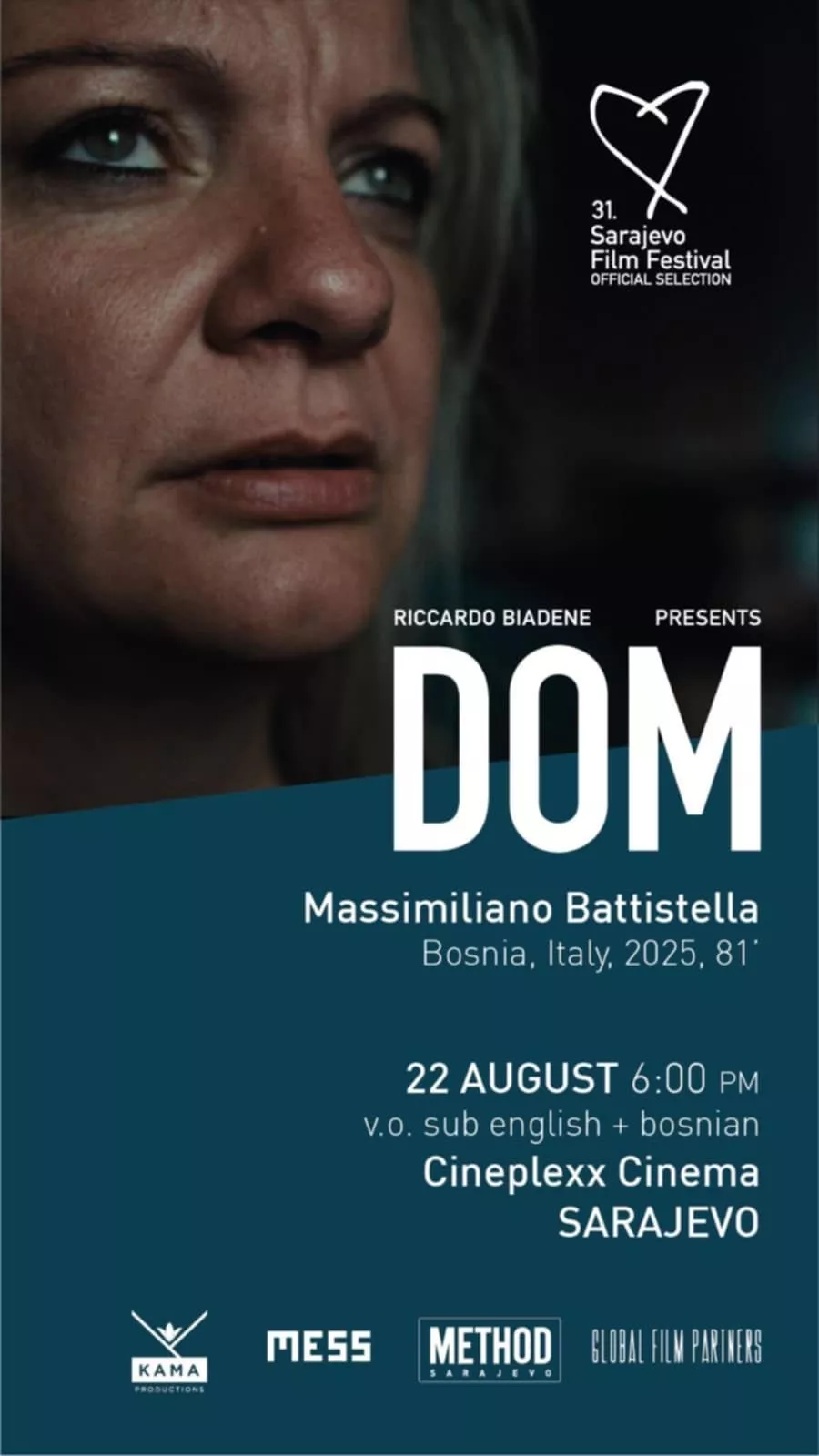 (Patria) - DOM, italijansko-bosanski dokumentarni film u režiji Massimiliana Batistelle, koji otvara sekciju Venecijanske noći tokom 82. Međunarodnog filmskog festivala u Veneciji, imat će svoju svjetsku pretpremijeru na ovogodišnjem Sarajevskom filmskom festivalu u petak 22. avgusta u 18h u Cineplexxu.