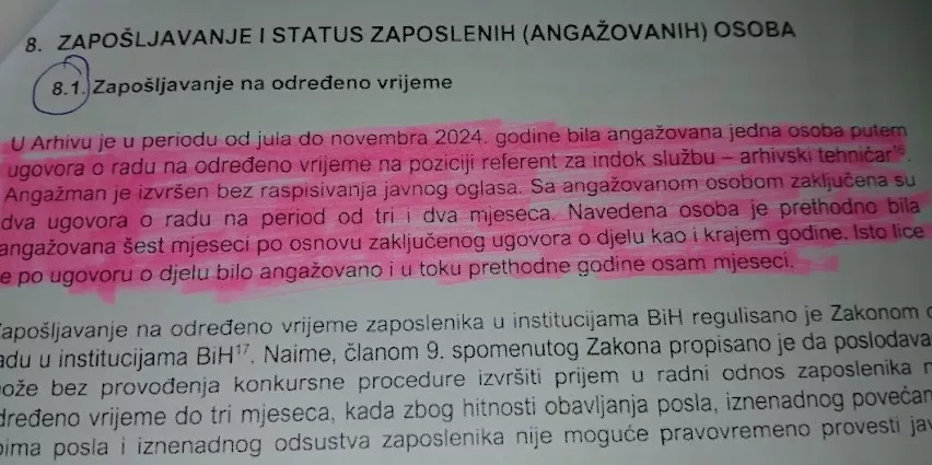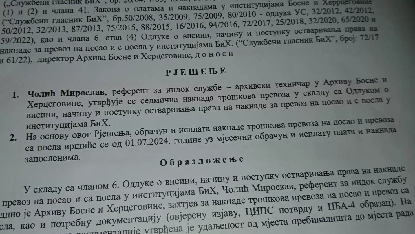 - Armin Valjević je ugovorno plaćen za popravke ormara i polica u depoima (2000 KM u 2024, pa ponovo 2100 KM u 2025), ali svjedoci potvrđuju da ga nikada nisu vidjeli u prostorijama Arhiva niti da je posao obavljen niti bi mogao biti obavljen bez podataka ko je i kada ulazio u depoe zbog osjetljivih podataka i historijske građe.