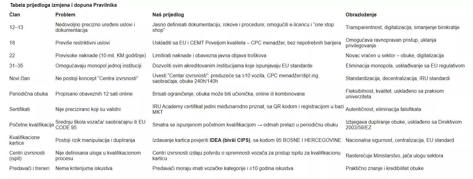 "Za izmjene Pravilnika vam nije potreban nikakav odbor – ovo je vaš Pravilnik. Da ste pitali prevoznike prije njegove objave, ne bismo danas bili u ovoj situaciji. Konsultacije ste obavili isključivo sa interesnom grupom, a ne sa realnim sektorom. Molimo Vas da javno navedete ime jednog prevoznika sa kojim ste razgovarali o ovoj tematici.