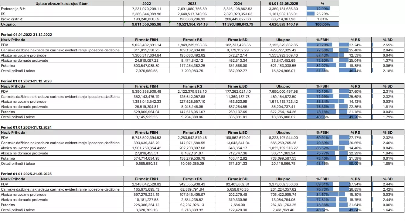 "Ovi podaci govore sami za sebe: najveći dio prihoda prikuplja se u Federaciji BiH, dok raspodjela prihoda
