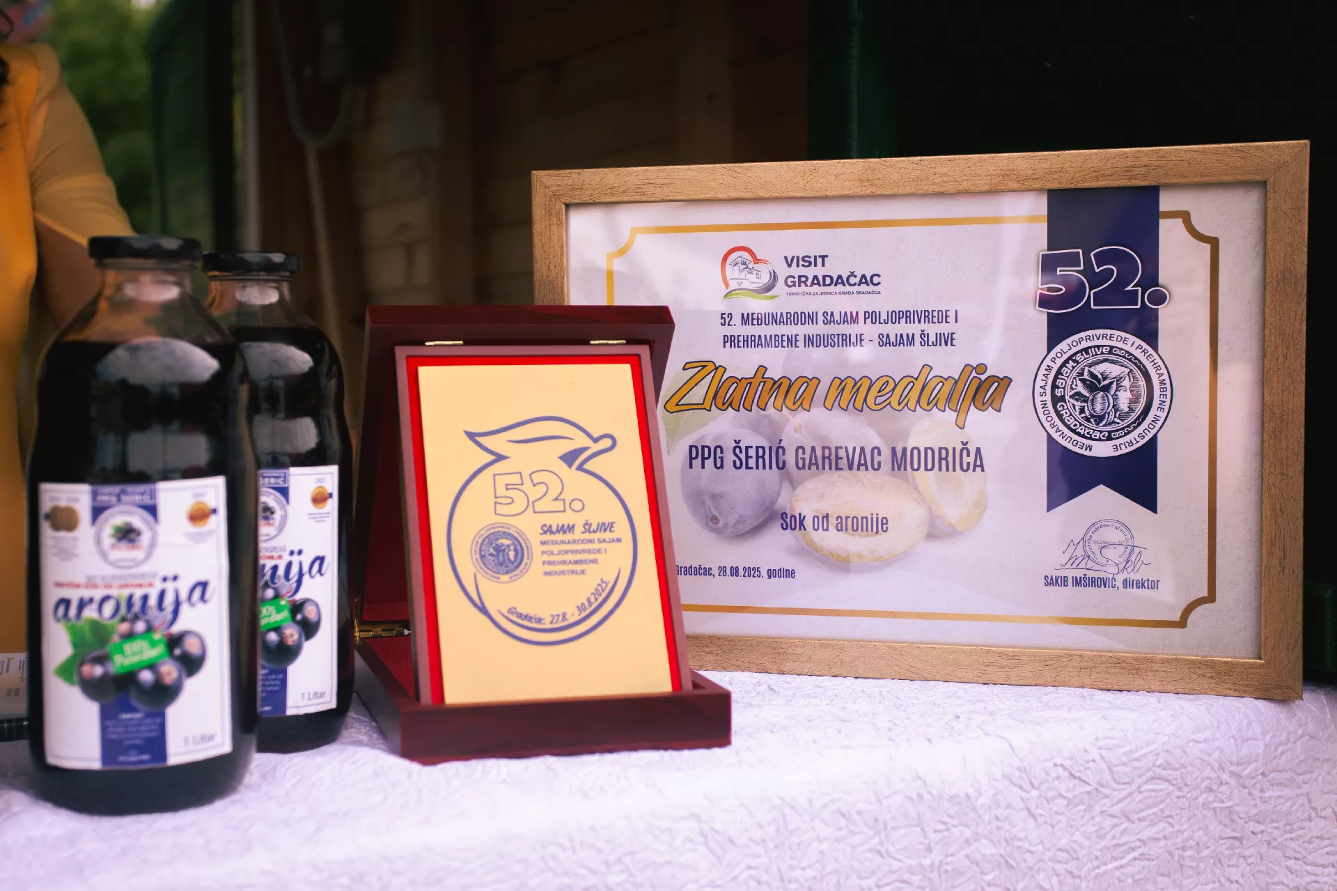Kvalitetan i dobar urod aronije rezultirao je zlatnom medaljom Sajma šljive za PPG „Šerić“ Garevac.