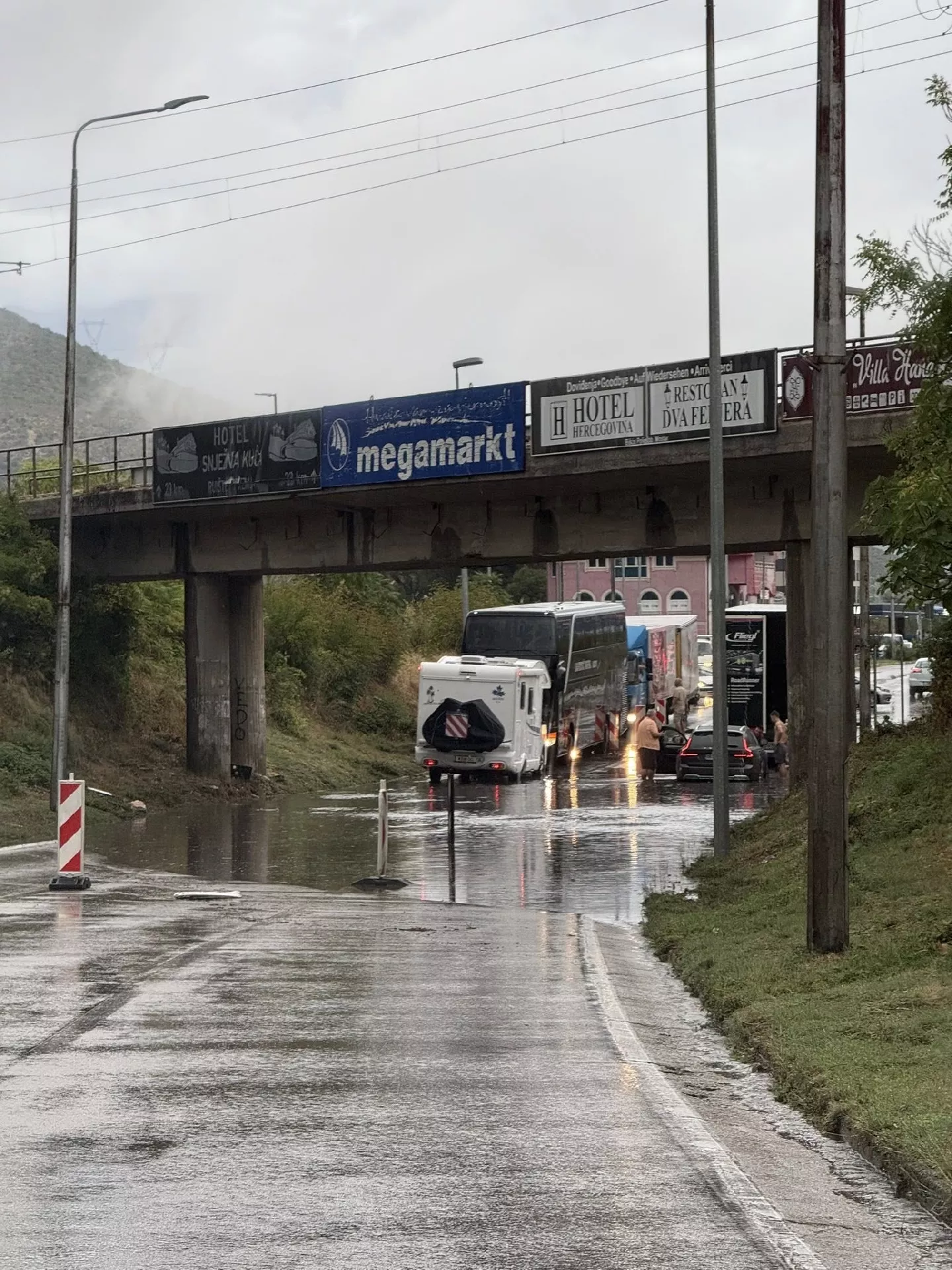 (Patria) - Zbog obilnih padavina i zadržavanja vode u podvožnjaku na ulazu u Mostar iz pravca Jablanice, BIHAMK je vozačima preporučio korištenje magistralnog puta M-17. Na terenu se nalazi policijska patrola koja reguliše saobraćaj.