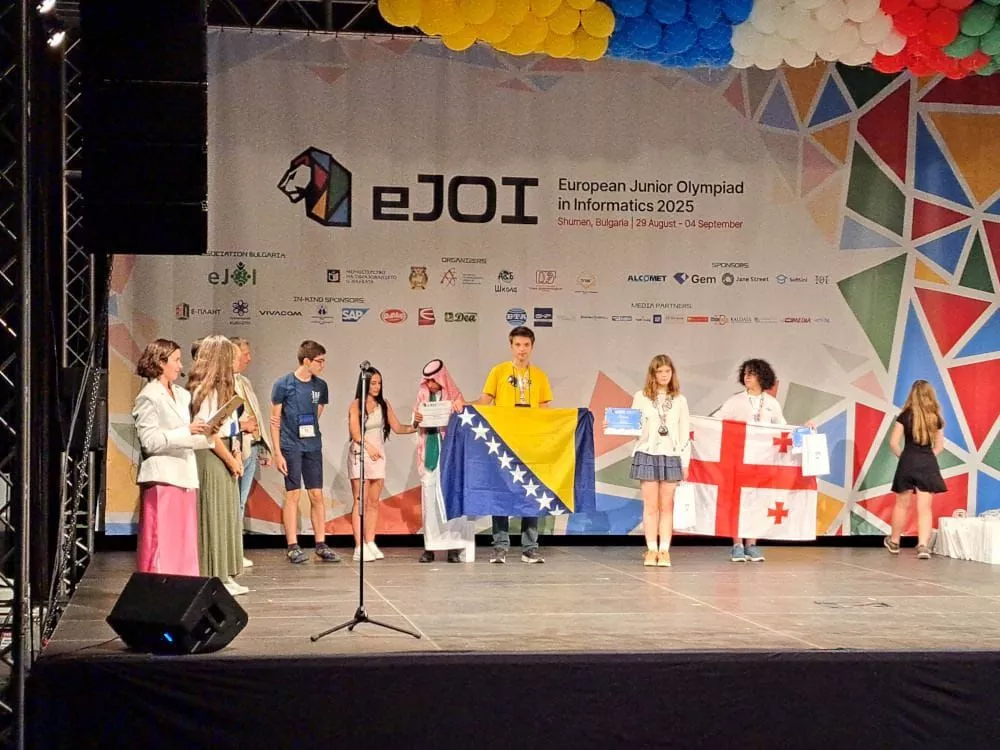Na prestižnoj Evropskoj juniorskoj olimpijadi iz informatike (EJOI 2025), održanoj u bugarskom gradu Shumenu, našu domovinu predstavljala je ekipa talentovanih učenika: Amir Karamović (JU OŠ "Musa Ćazim Ćatić" Sarajevo), Tarik Odžak (JU OŠ "Grbavica I" Sarajevo), Marko Zarić (OŠ "Sveti Sava" Gacko) i Aleksej Popović (OŠ "Sveti Sava" Zvornik).