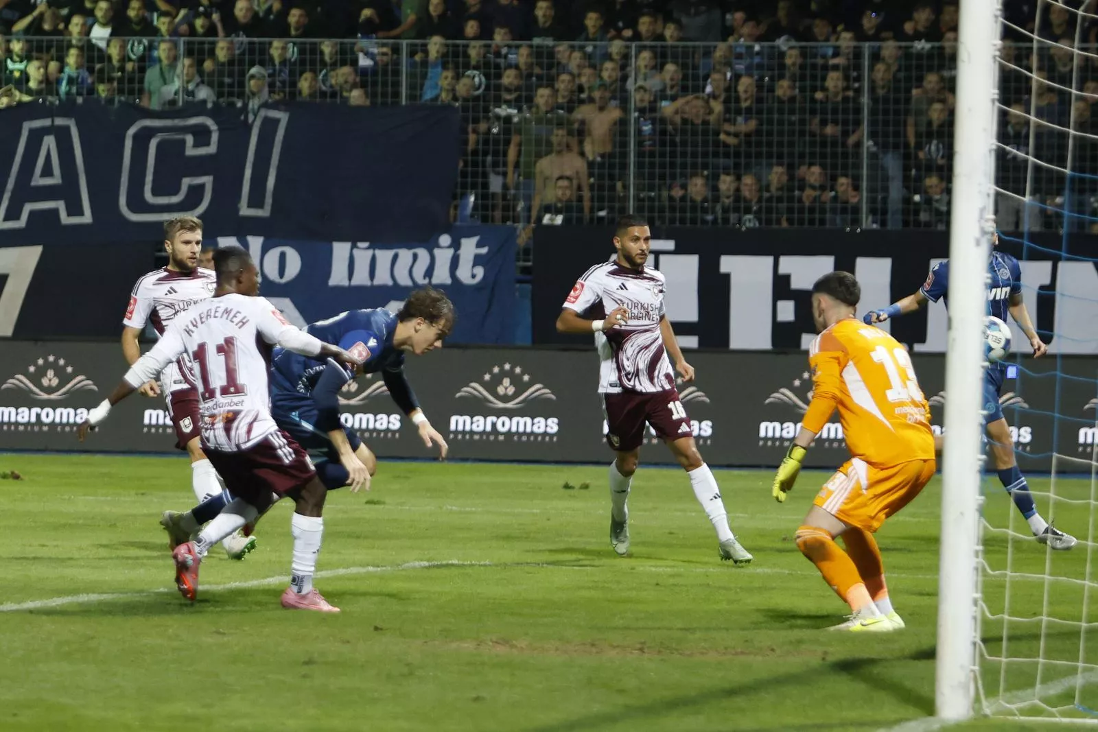 U 64. minuti zatresla se mreža bordo tima. Cimirot gubi loptu na sredinu, Erick je krenuo prema golu Sarajeva i šutirao. Pogodio je nebranjeni dio mreže gola Mušije i Grbavica je eksplodirala.