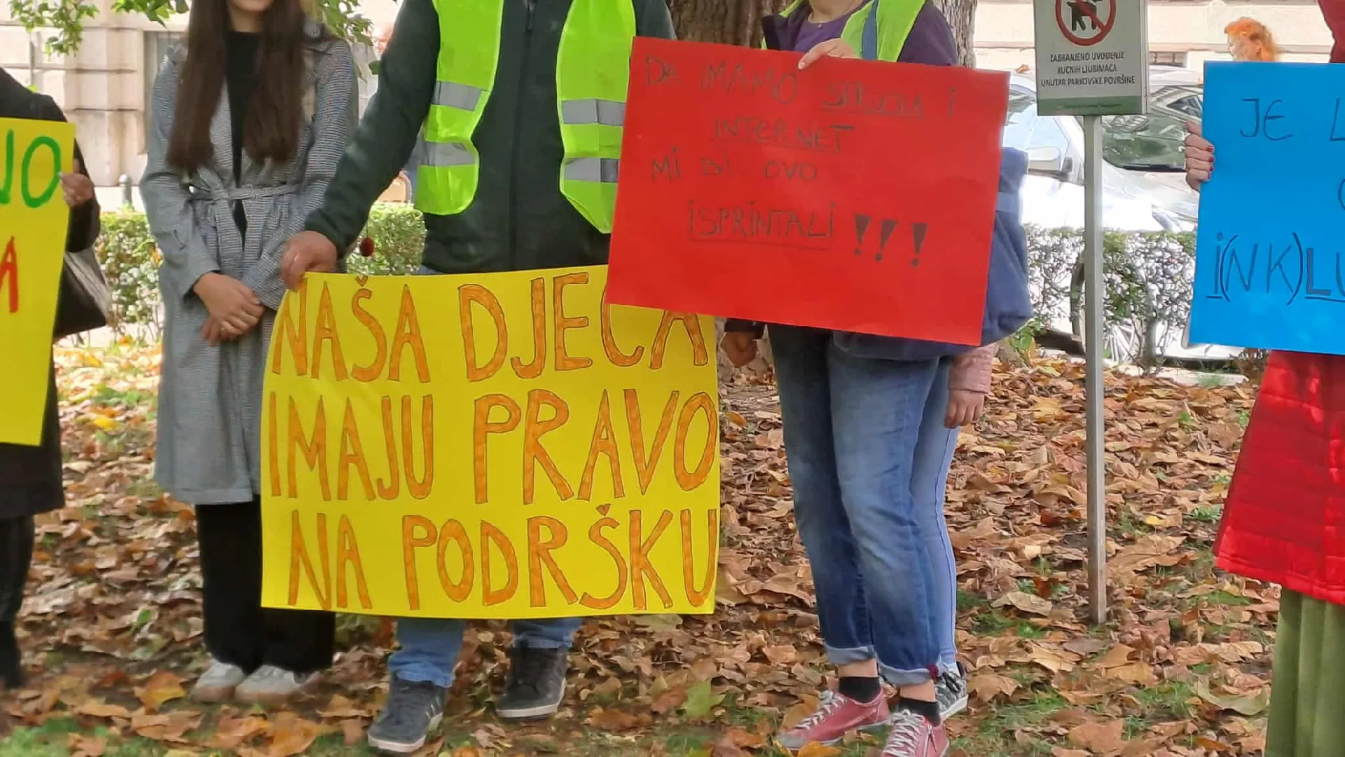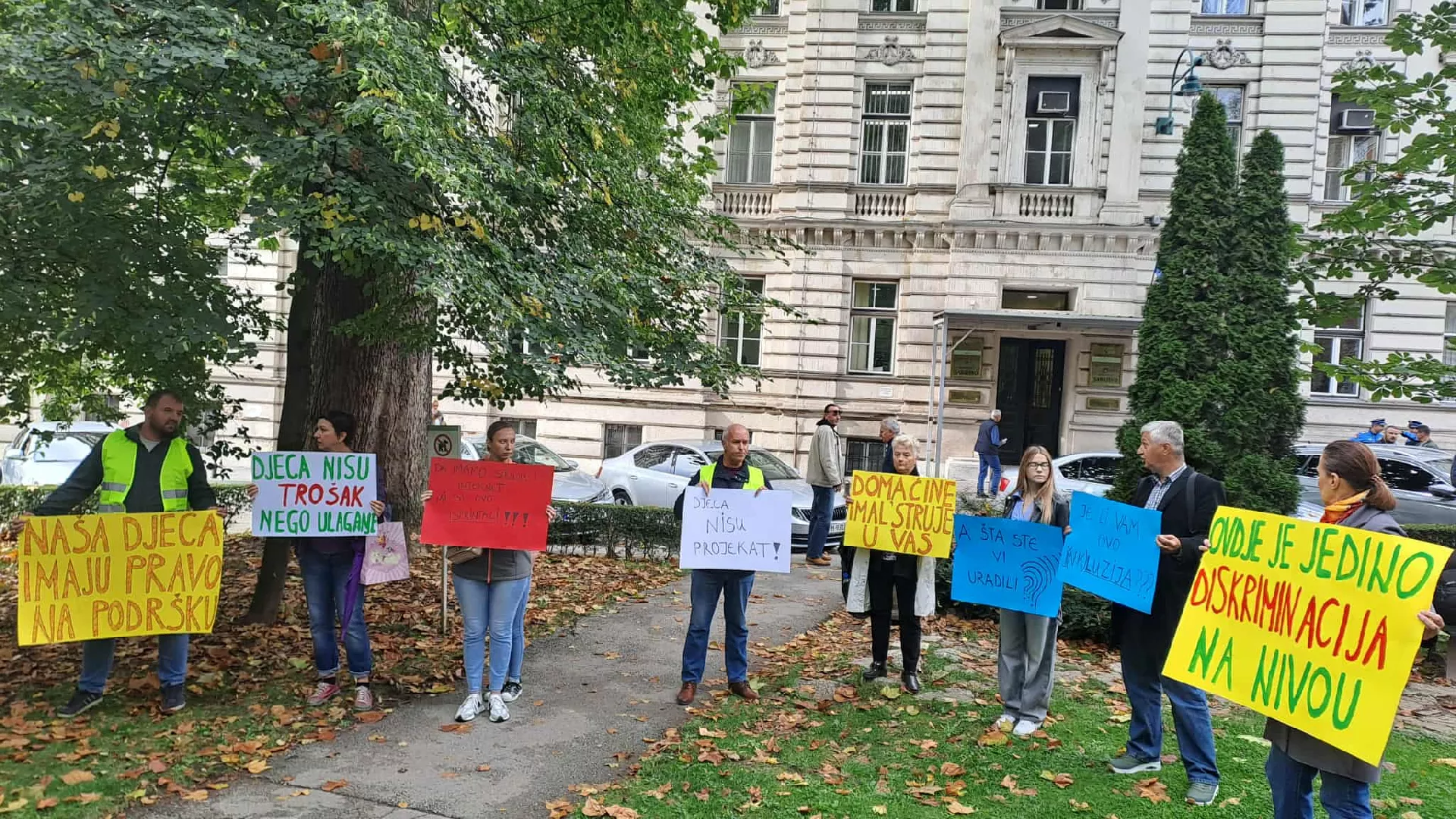 (Patria) - U parku prekoputa zgrade Vlade Kantona Sarajevo danas su održani protesti članova Udruženja Colibri koje okuplja roditelje djece i osoba sa poteškoćama u razvoju.