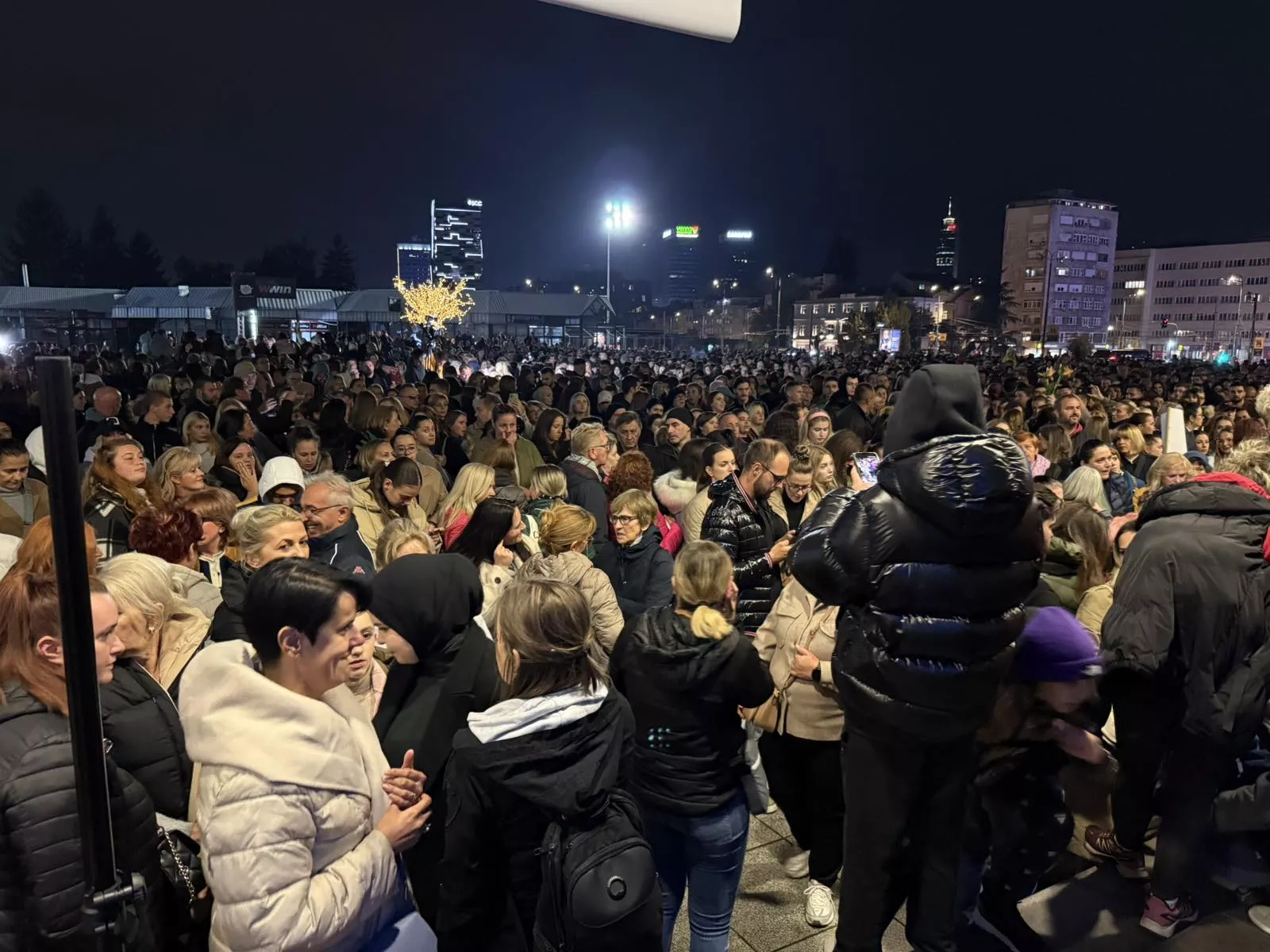 Na videima ispod pogledajte djelić večerašnje atmosfere sa skupa održanog ispred Doma mladih.
