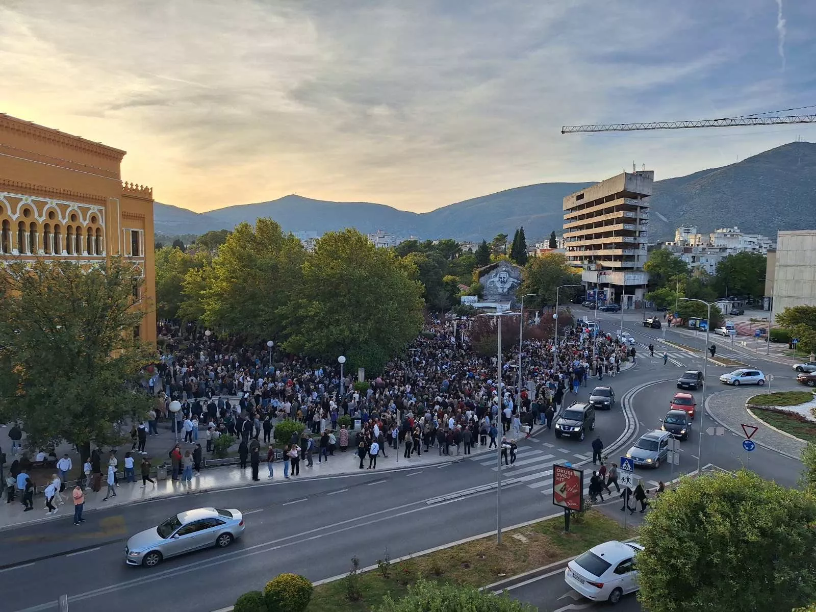 Grad na Neretvi, uoči okupljanja na Španskom trgu, od Halida Bešlića oprostio se skokom sa Starog mosta bez aplauza, u organizaciji Udruženja "Mostari".