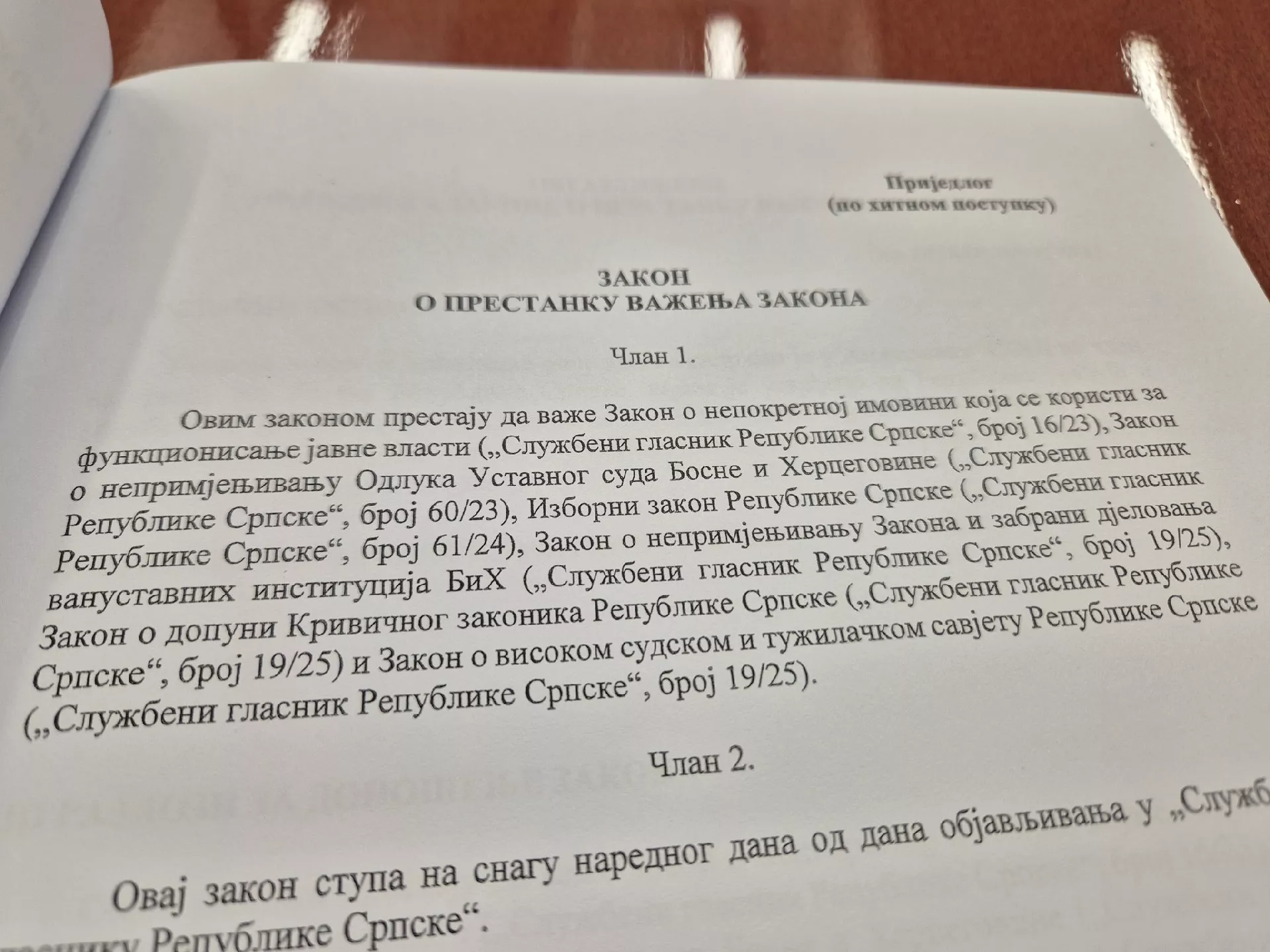 NSRs je izglasala zakone kojim se zabranjuje rad VSTV-u, Sudu, Tužilaštvu i SIPA-i na teritoriji Rs. Ove zakone Ustavni sud BiH je stavio van snage, ali i Zakon o VSTV Rs, Izborni zakon Rs, Zakon o nepokretnoj imovini koji se koristi za funkcionisanje javne vlasti.