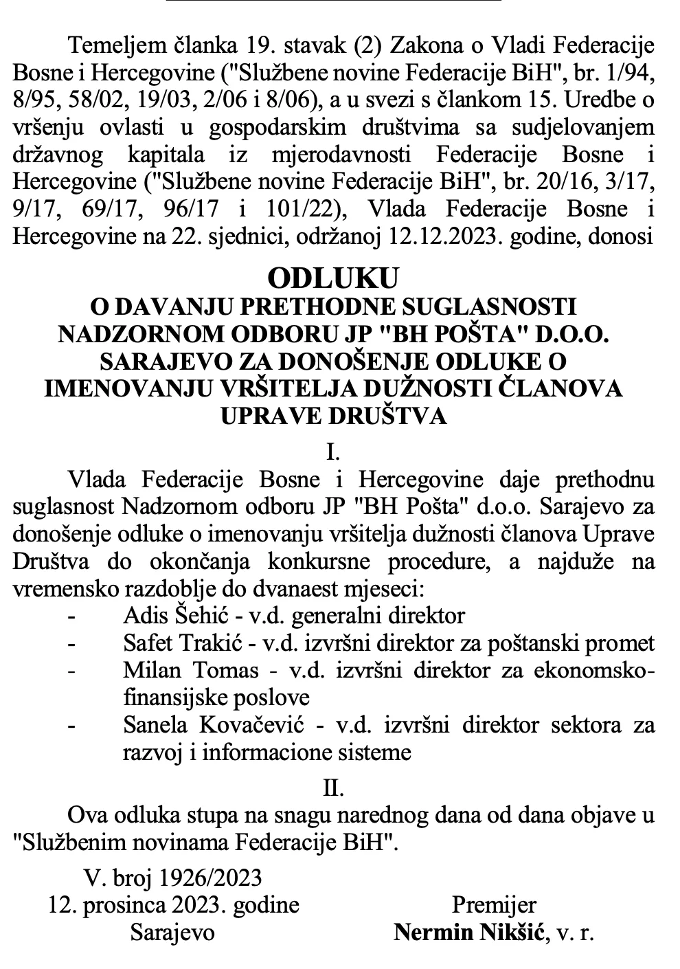 I nije bio problem, što pokazuje sjednica Vlade Federacije BiH od 12.12. 2023. godine.