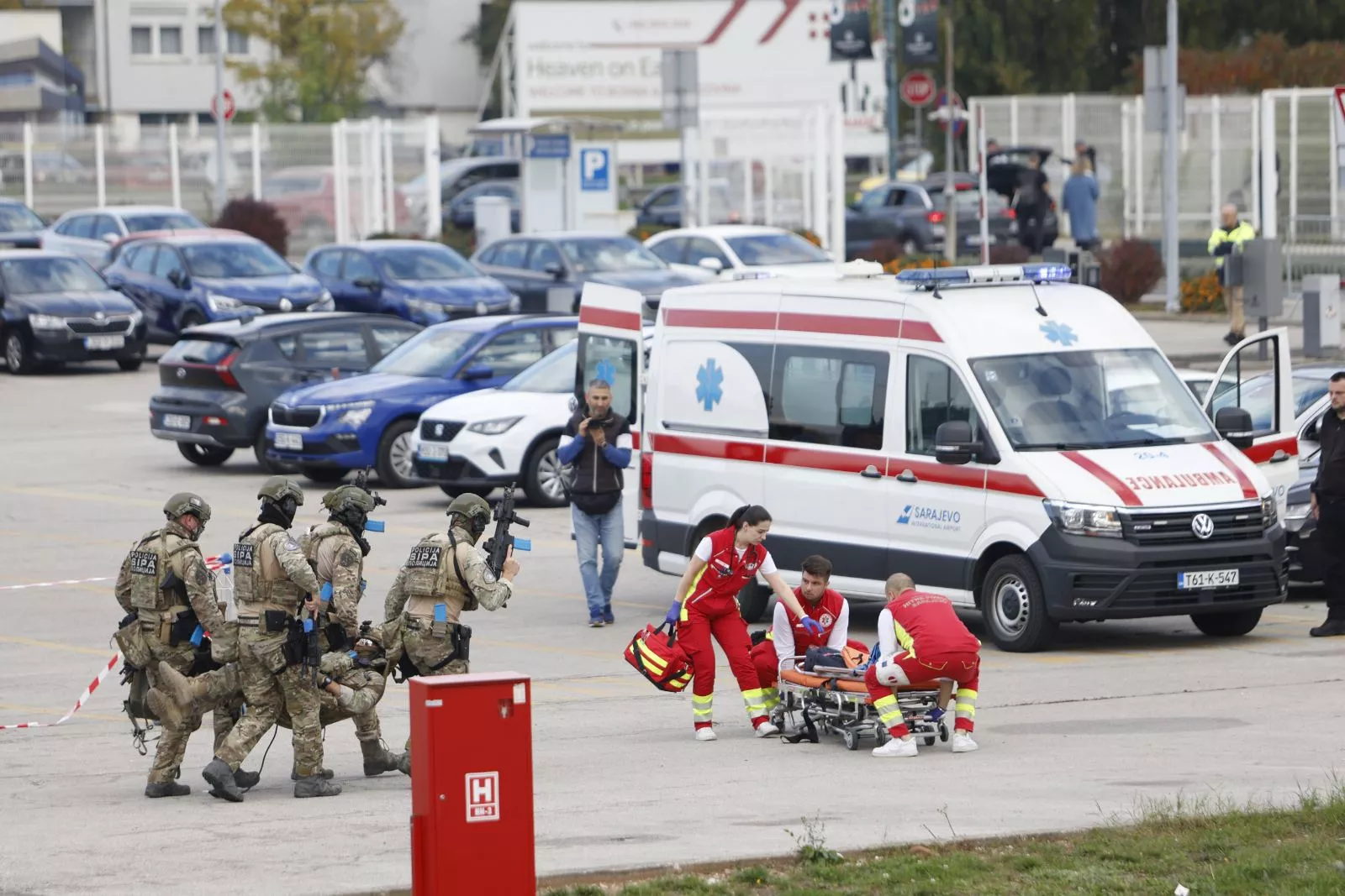 (Patria) - Na Međunarodnom aerodromu Sarajevo, u organizaciji J.P. Međunarodni aerodrom Sarajevo i Ministarstva sigurnosti BiH, danas je održana metodsko-pokazna vježba pod nazivom "Simulacija oružanog napada, talačke krize i napuštenog prtljaga - eksplozivne naprave".